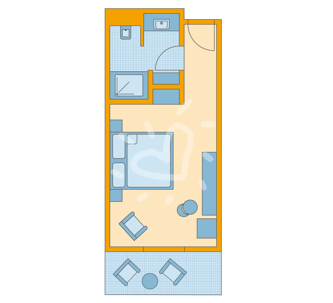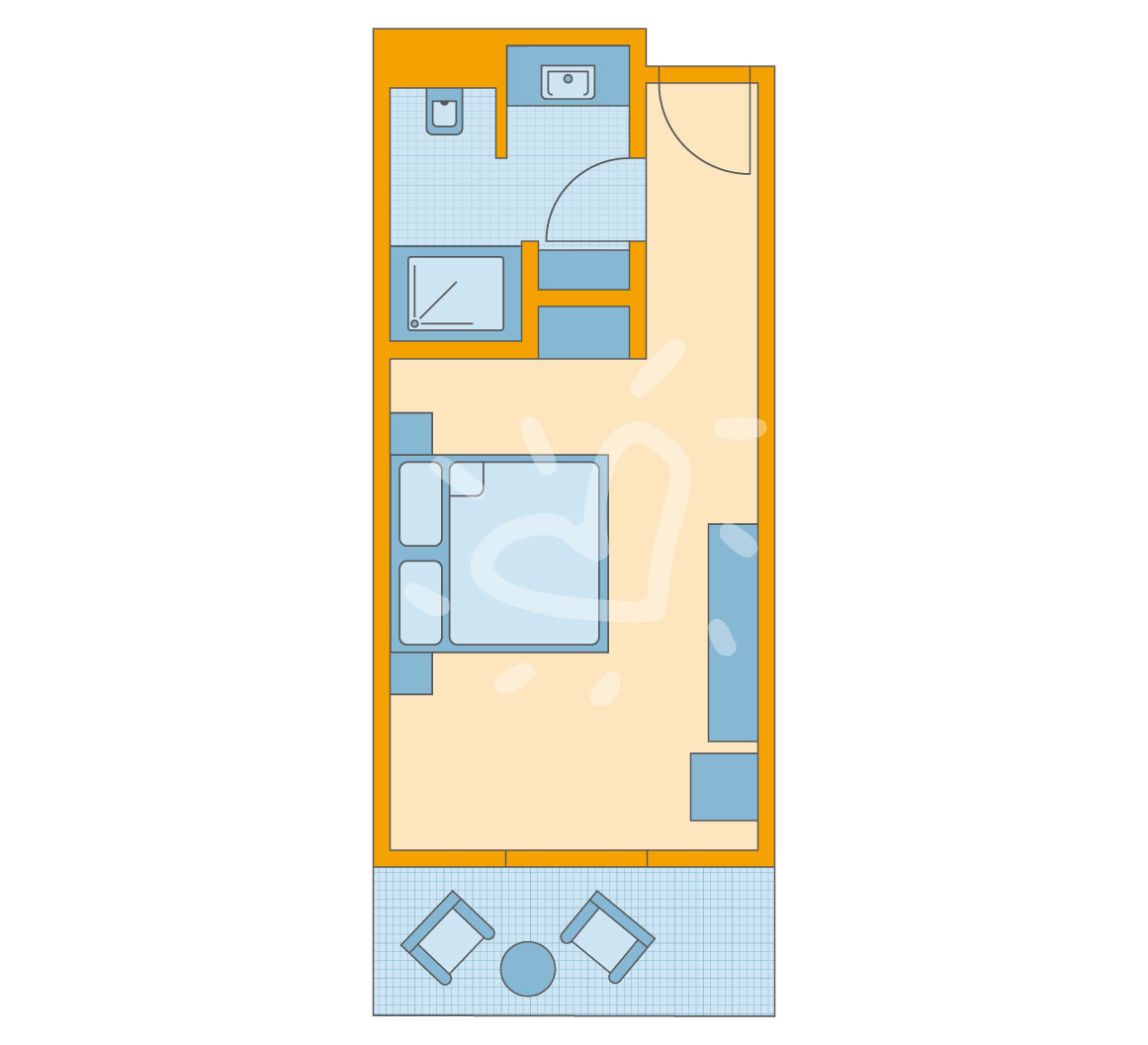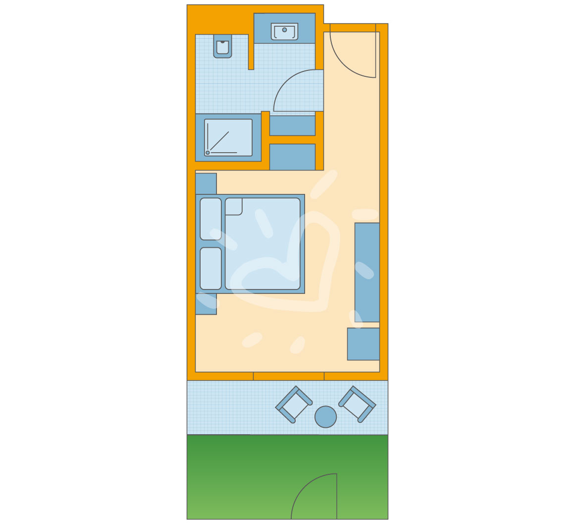 Details anzeigenDoppelzimmer oder Doppelzimmer zur Alleinbenutzung, Bad mit Dusche und WC, z. T. kleine Terrasse, ca. 20 m². Kein ZB oder Babybett möglich.
