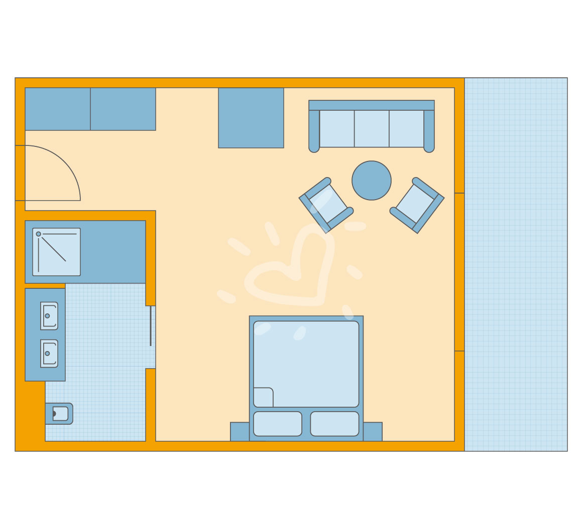 Details anzeigenGroßes Doppelzimmer mit integriertem Wohnbereich. Bad mit Dusche und Badewanne, Balkon, ca. 47 m². Unterbringung Zustellbett erfolgt auf ausziehbarem Schlafsofa mit Liegefläche ca. 160x200 cm.