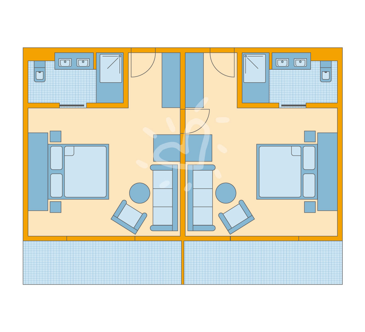 Ausstattung: Dusche, WC, Haartrockner, Balkon oder Terrasse, Telefon, Fernseher, WLAN, Kühlschrank, Heizung und Safe.SafeWLANTVKlimaanlage -