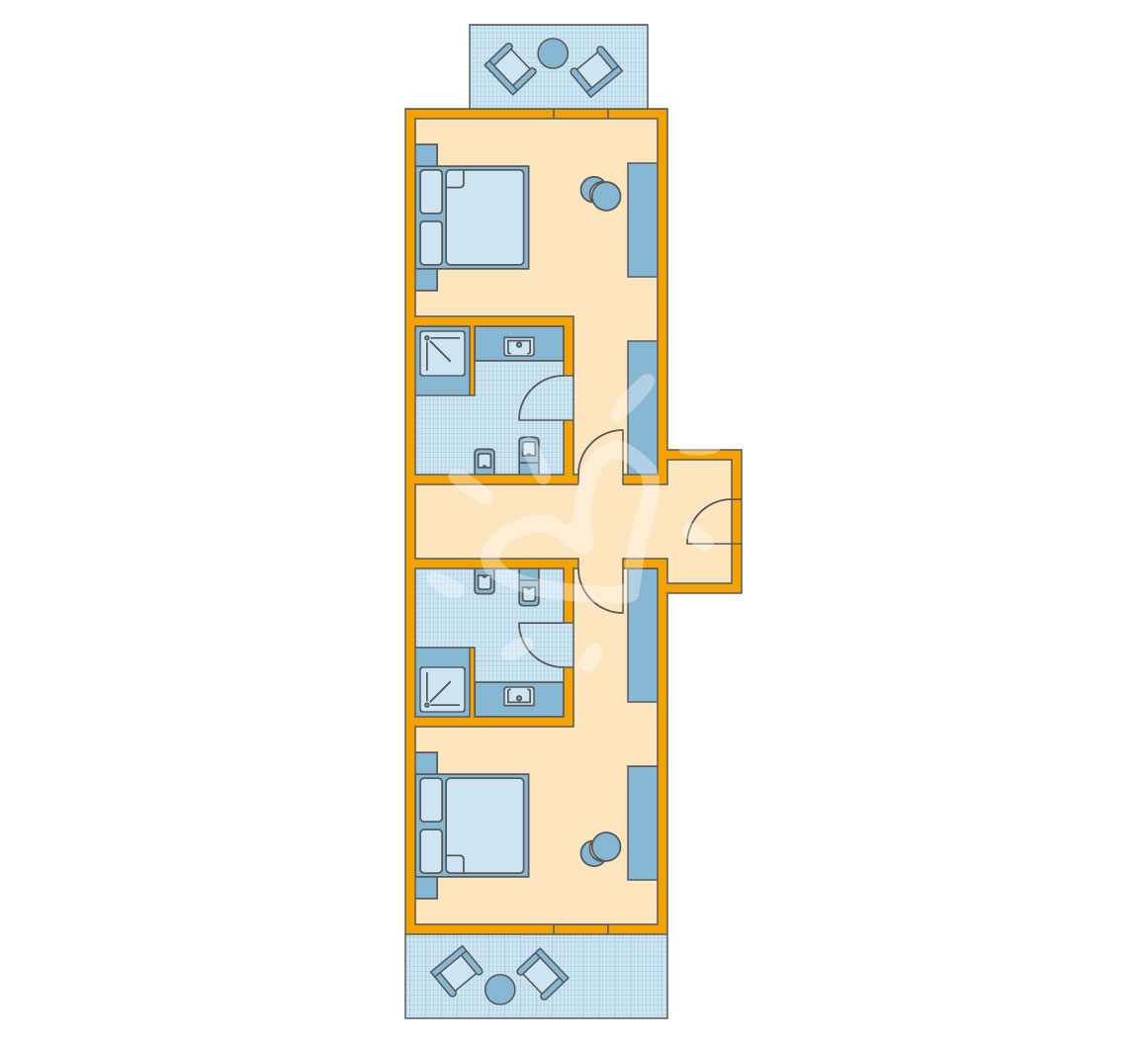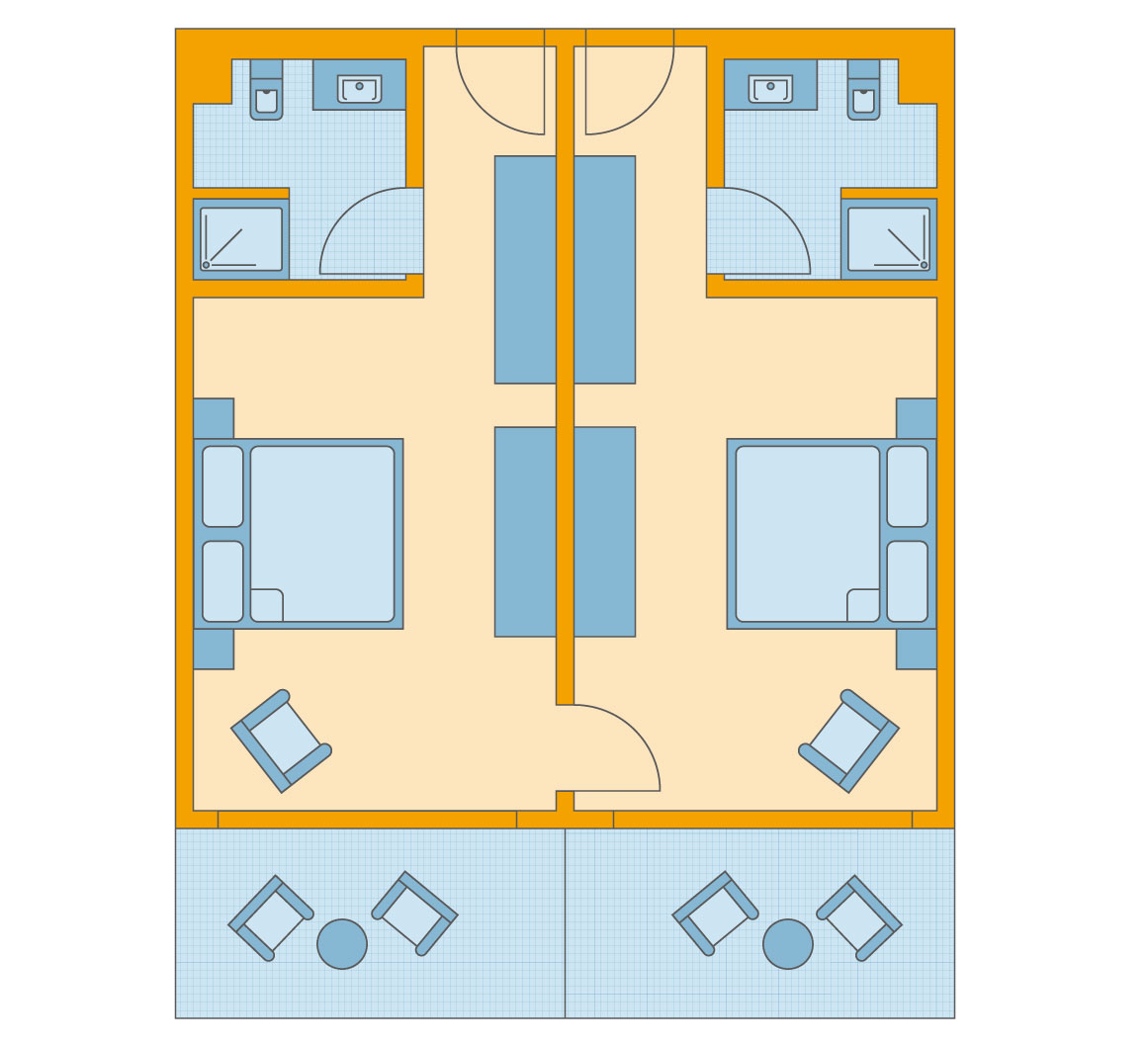 Details anzeigenCa. 46 m², Schlafsessel ca. 75 x 185 cm. 2 Doppelzimmer sind über einen abschließbaren Vorflur/Haupteingang miteinander verbunden. Keine direkte Verbindungstür zwischen den beiden Zimmern.