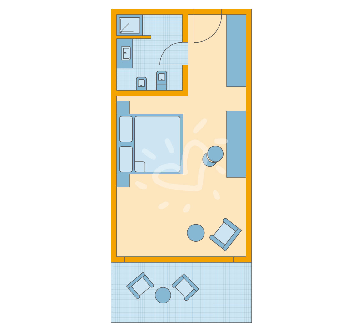 Details anzeigenCa. 23 m², Einzelzimmer sind Doppelzimmer zur Alleinbenutzung. Schlafsessel: ca. 75 x 185 cm.