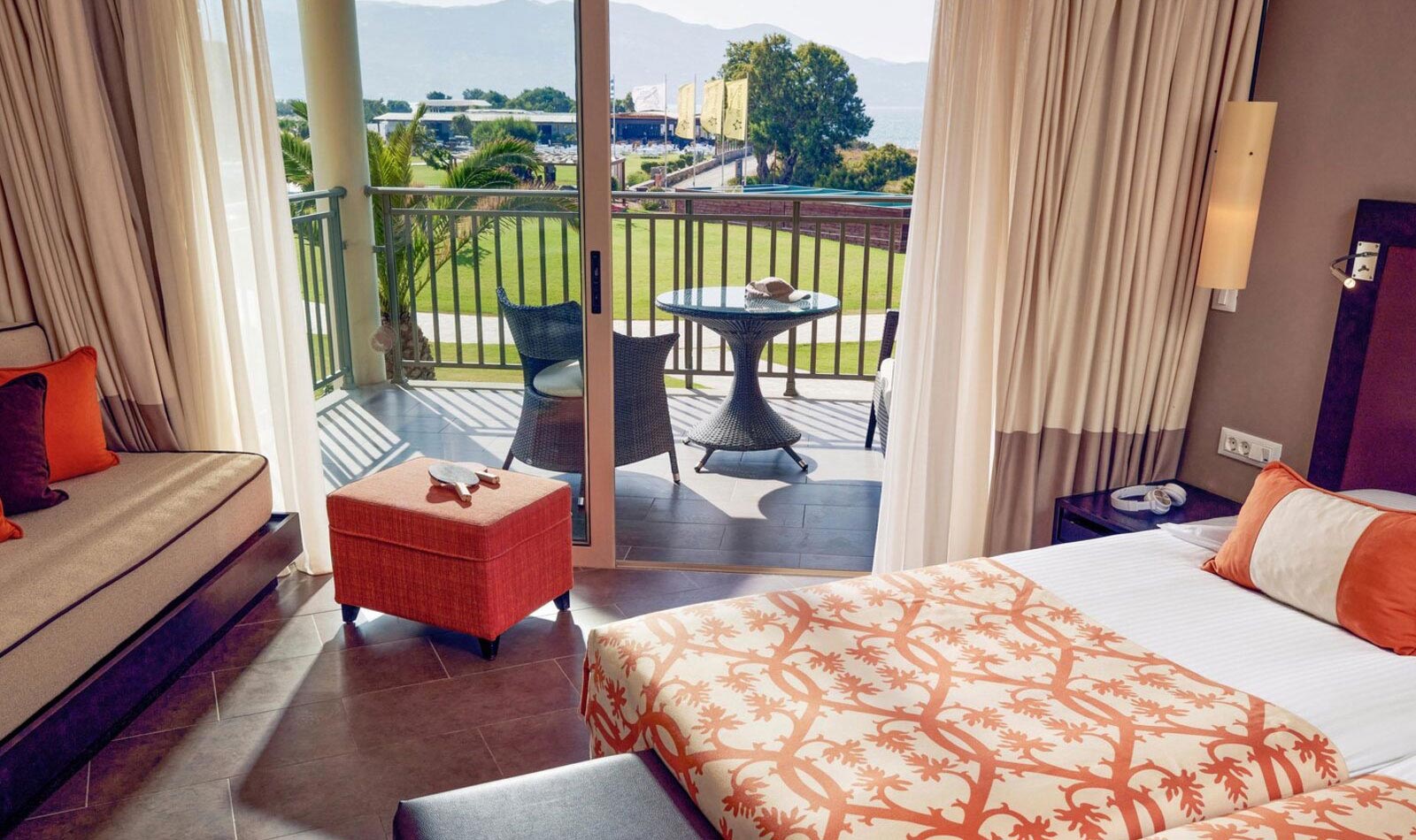 Klimaanlage: individuell regelbar, zentral gesteuert Fußboden: Fliesenboden Safe: ohne Gebühr Minibar: Wasser bei Anreise/Bedarf und Softdrinks bei Anreise Internet: WLAN/WiFi: ohne Gebühr, Fernseher: deutsches Programm, Sat-TV Roomservice: auf Anfrage, gegen Gebühr; Reinigungsservice: täglich Badewanne oder Dusche, WC, Föhn Balkon oder Terrasse: mit SitzgelegenheitSafeWLANTVKlimaanlageMeerblick -