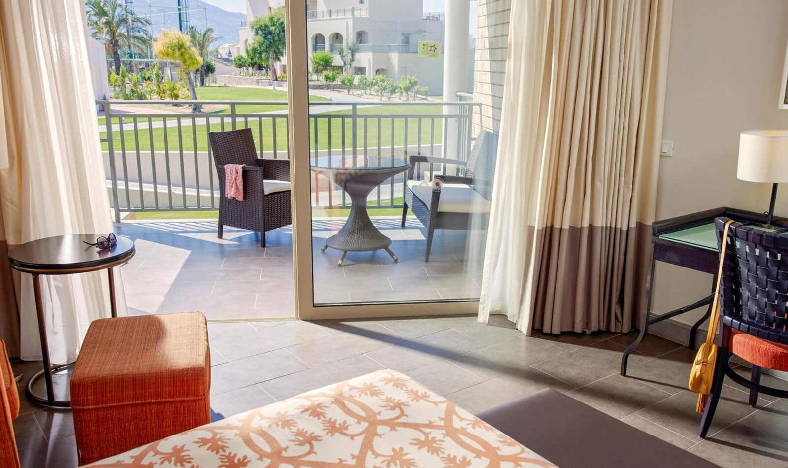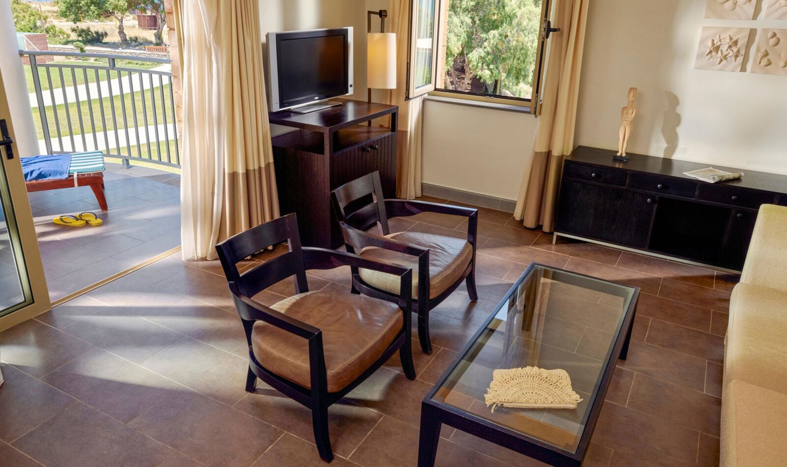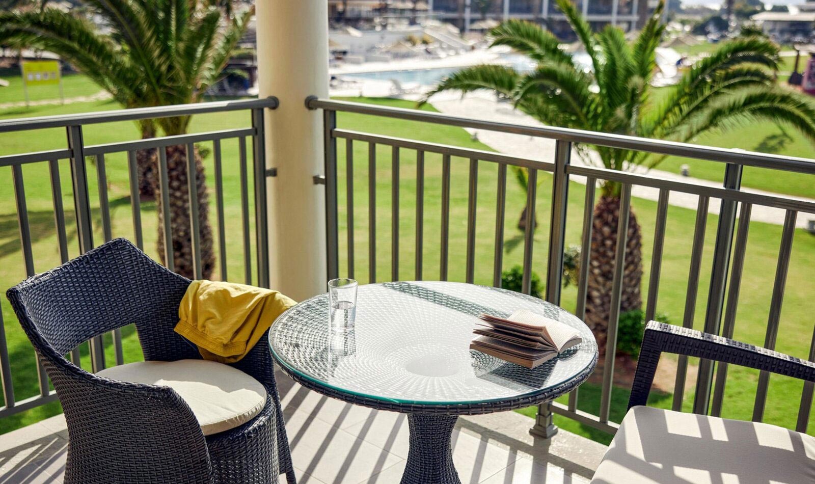 Klimaanlage: individuell regelbar, zentral gesteuert Fußboden: Fliesenboden Safe: ohne Gebühr Minibar: Wasser bei Bedarf/Anreise und Softdrinks bei Anreise Internet: WLAN/WiFi: ohne Gebühr, Fernseher: deutsches Programm, Sat-TV Roomservice: auf Anfrage, gegen Gebühr, Reinigungsservice: täglich Badewanne oder Dusche, WC, Föhn Terrasse: mit Sitzgelegenheit und Zugang zum Sharing Pool/Gemeinschaftspool für 3 oder 7 ZimmerSafeWLANTVKlimaanlageBalkon -