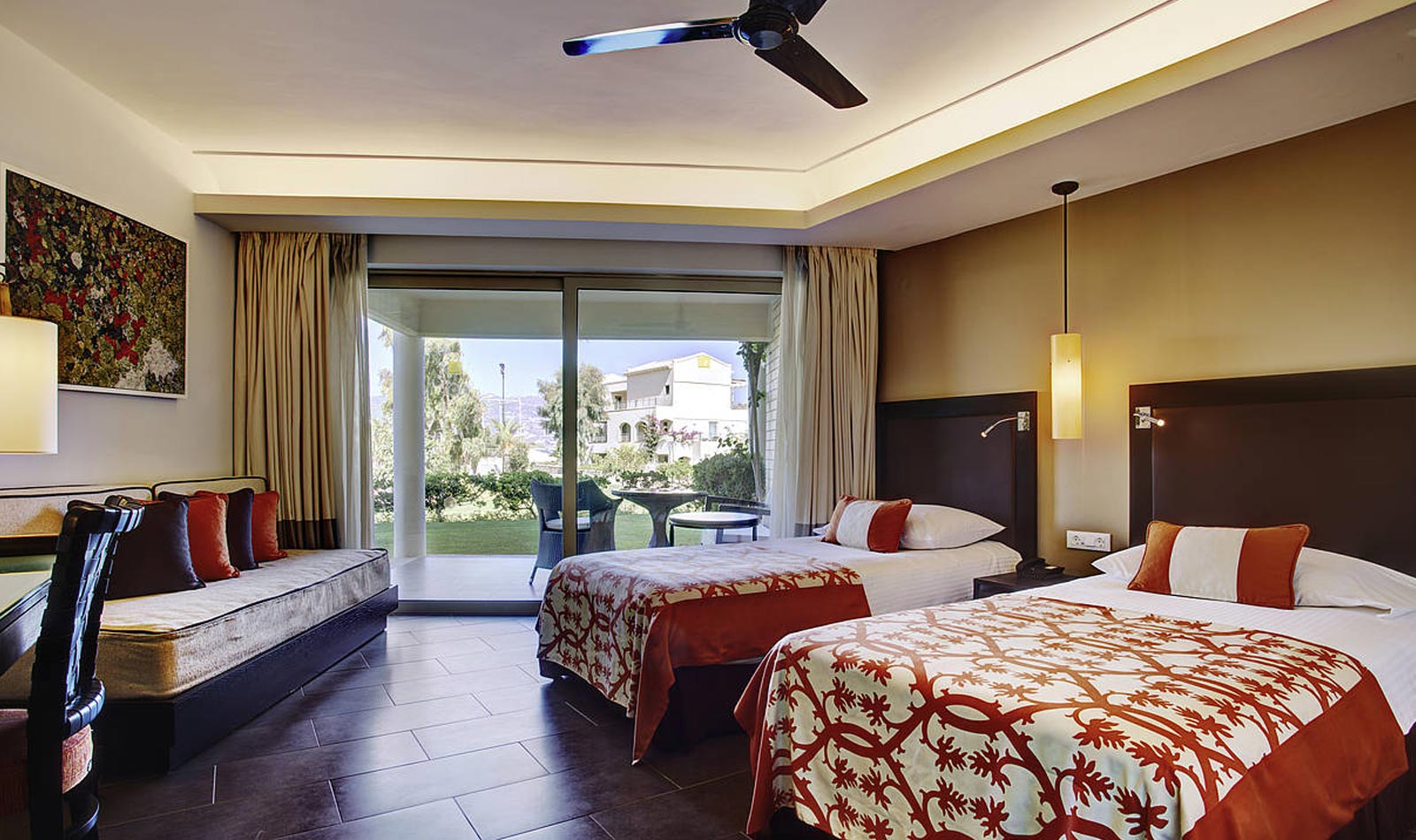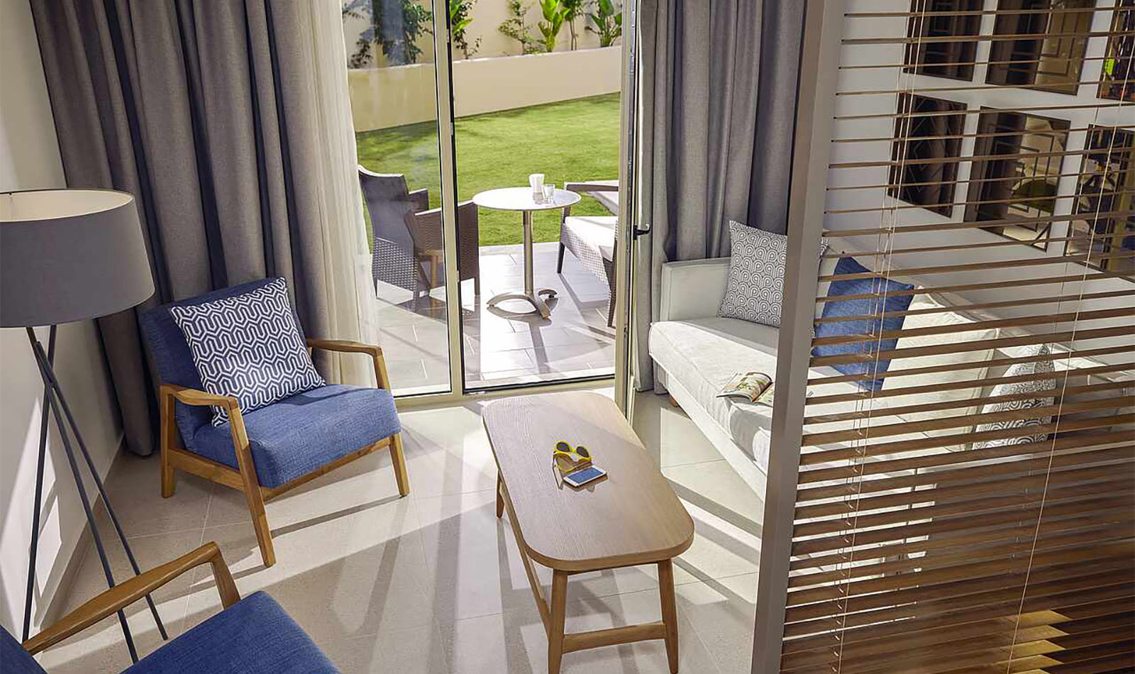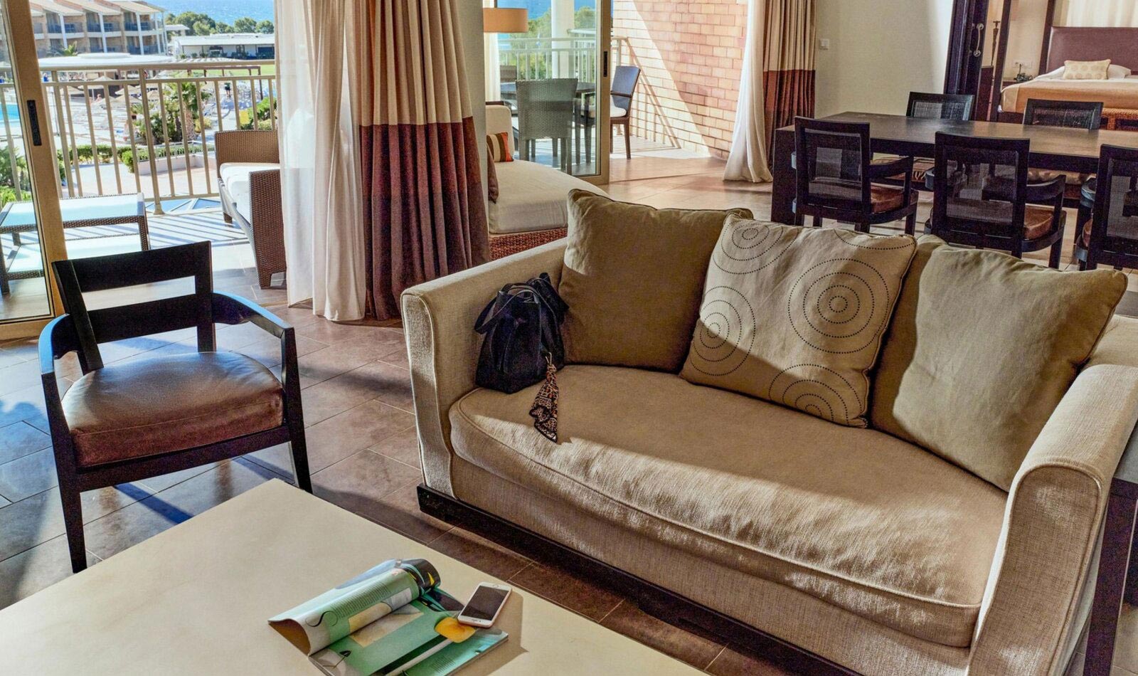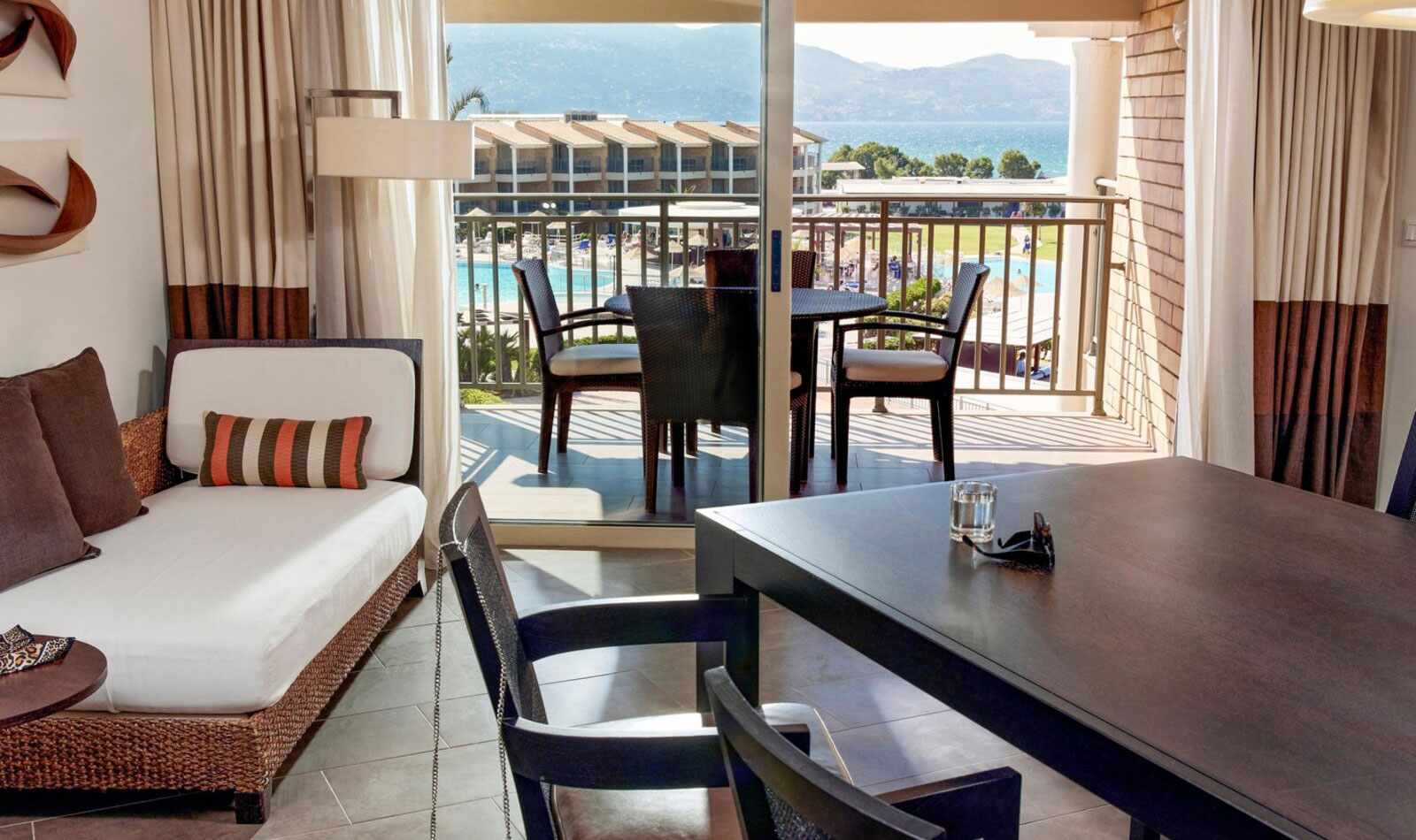 Details anzeigenNichtraucherzimmer, letzte Komplettrenovierung 2008. Meerblick, Poolblick. Erdgeschoss. ca. 62 m². Gesamtanzahl der Räume in diesem Zimmertyp: 2, Aufteilung wie folgt: kombiniertes Wohn-/Schlafzimmer und 1 Schlafzimmer. King Size Bett. Mindest-/Maximalbelegung: mind. 2 Erwachsene / max. 3 Erwachsene. Die Unterbringung der 3. Person erfolgt auf einem Schlafsofa.
