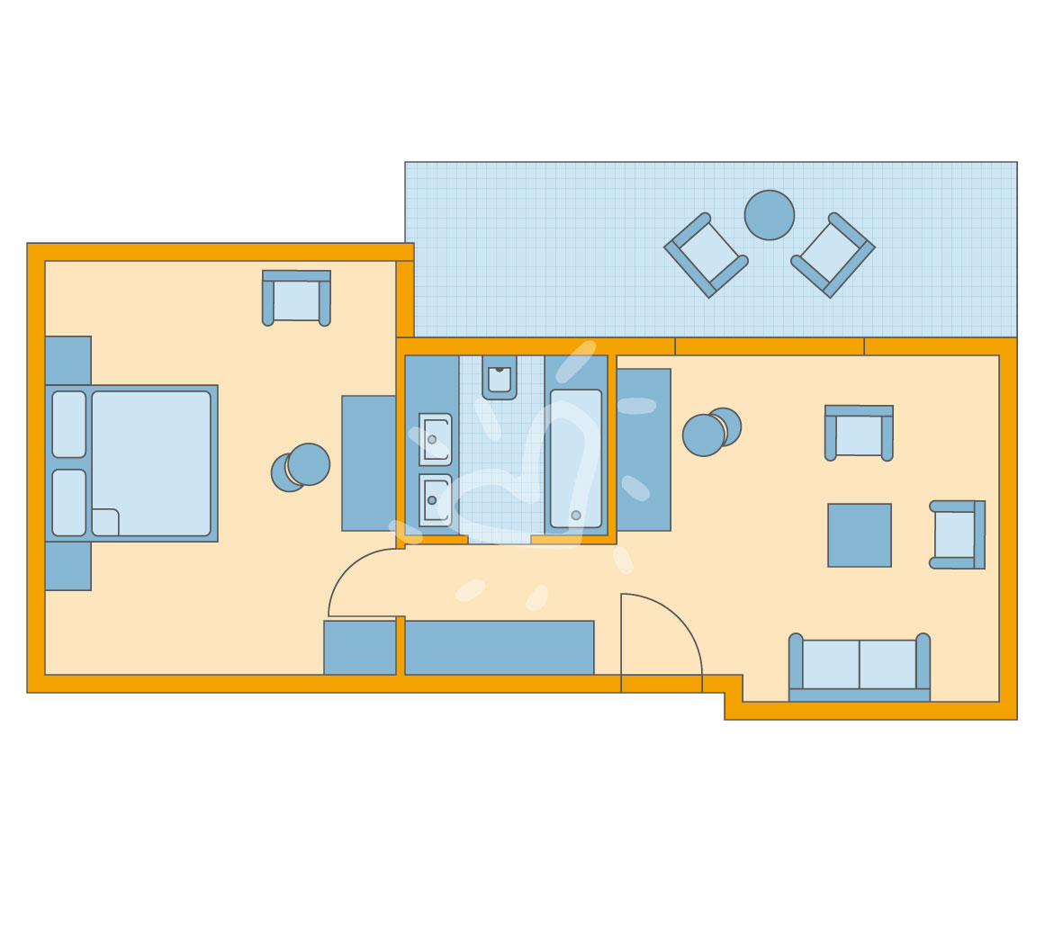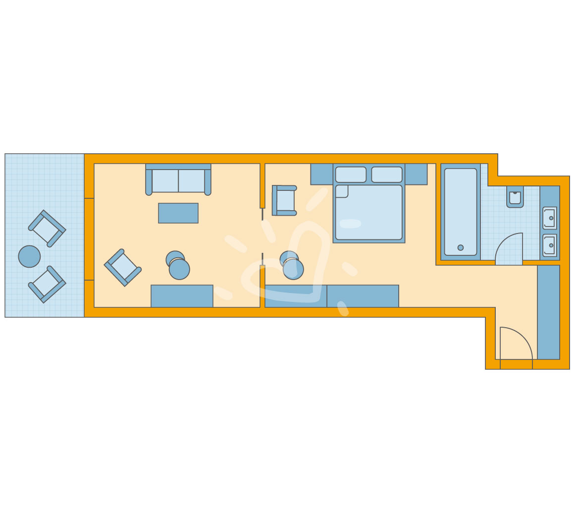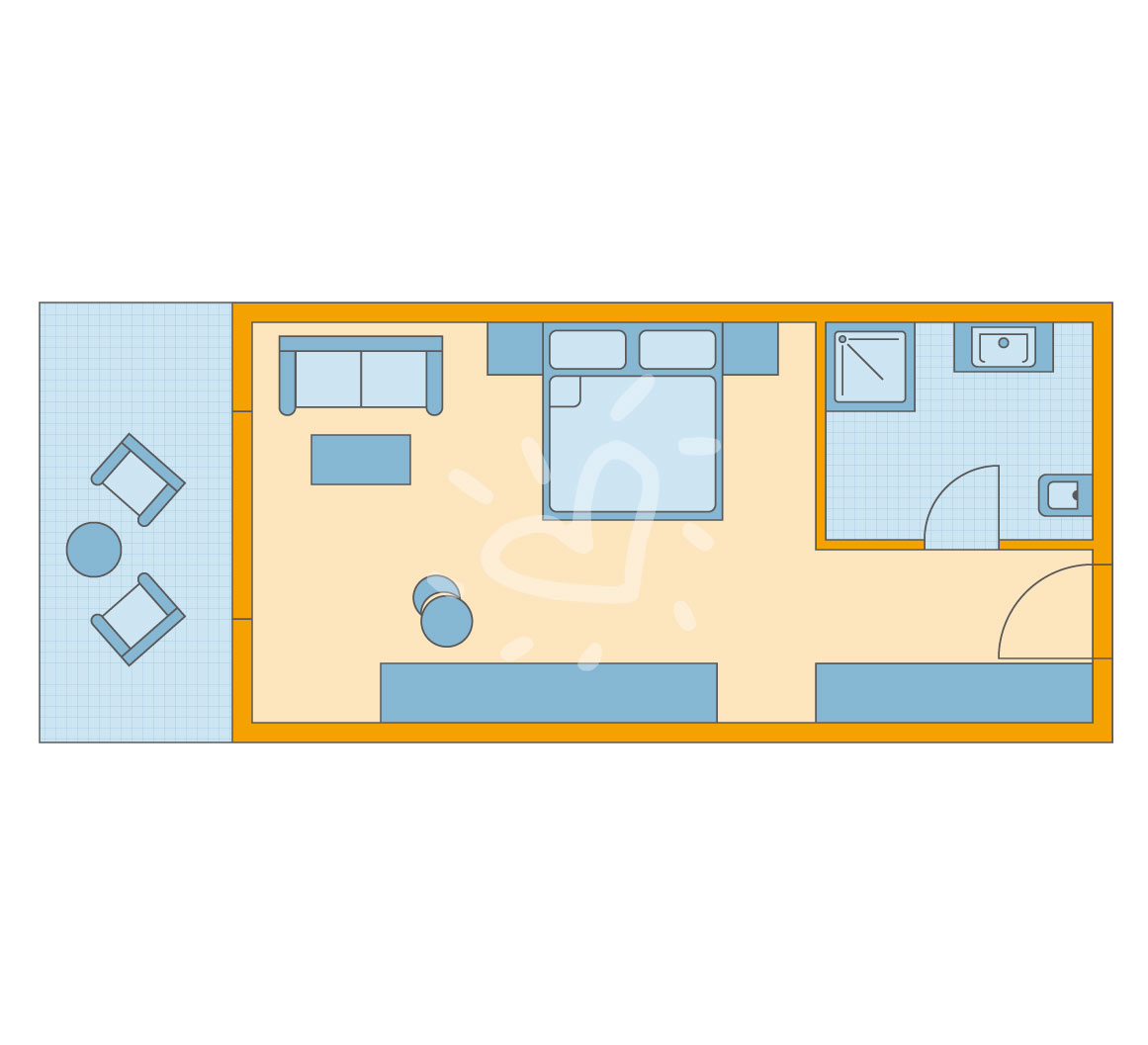 Klimaanlage: individuell regelbar, zemtral gesteuert Safe: ohne Gebühr Kaffee-/Teezubereiter Minibar: Wasser bei Anreise/Bedarf und Softdrinks bei Ankunft Telefon, Internet: WLAN/WiFi: ohne Gebühr, Fernseher: deutsches Programm, Sat-TV Roomservice auf Anfrage, gegen Gebühr; Reinigungsservice: täglich Badewanne oder Dusche, WC, Föhn Terrasse: mit SitzgelegenheitSafeWLANTVKlimaanlageBalkon -