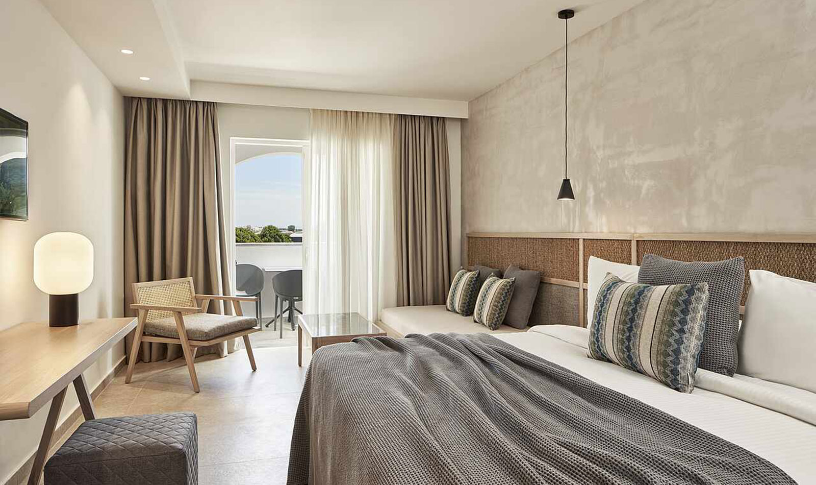 Klimaanlage: individuell regelbar, zentral gesteuert Safe: ohne Gebühr Kaffee-/Teezubereiter Minibar: Wasser bei Anreise/Bedarf und Softdrinks bei Ankunft Telefon, Internet: WLAN/WiFi: ohne Gebühr, Fernseher: deutsches Programm, Sat-TV Roomservice: auf Anfrage, gegen Gebühr; Reinigungsservice: ohne Gebühr Dusche, WC, Föhn Balkon oder Terrasse: mit SitzgelegenheitSafeWLANTVKlimaanlageMeerblickBalkon -