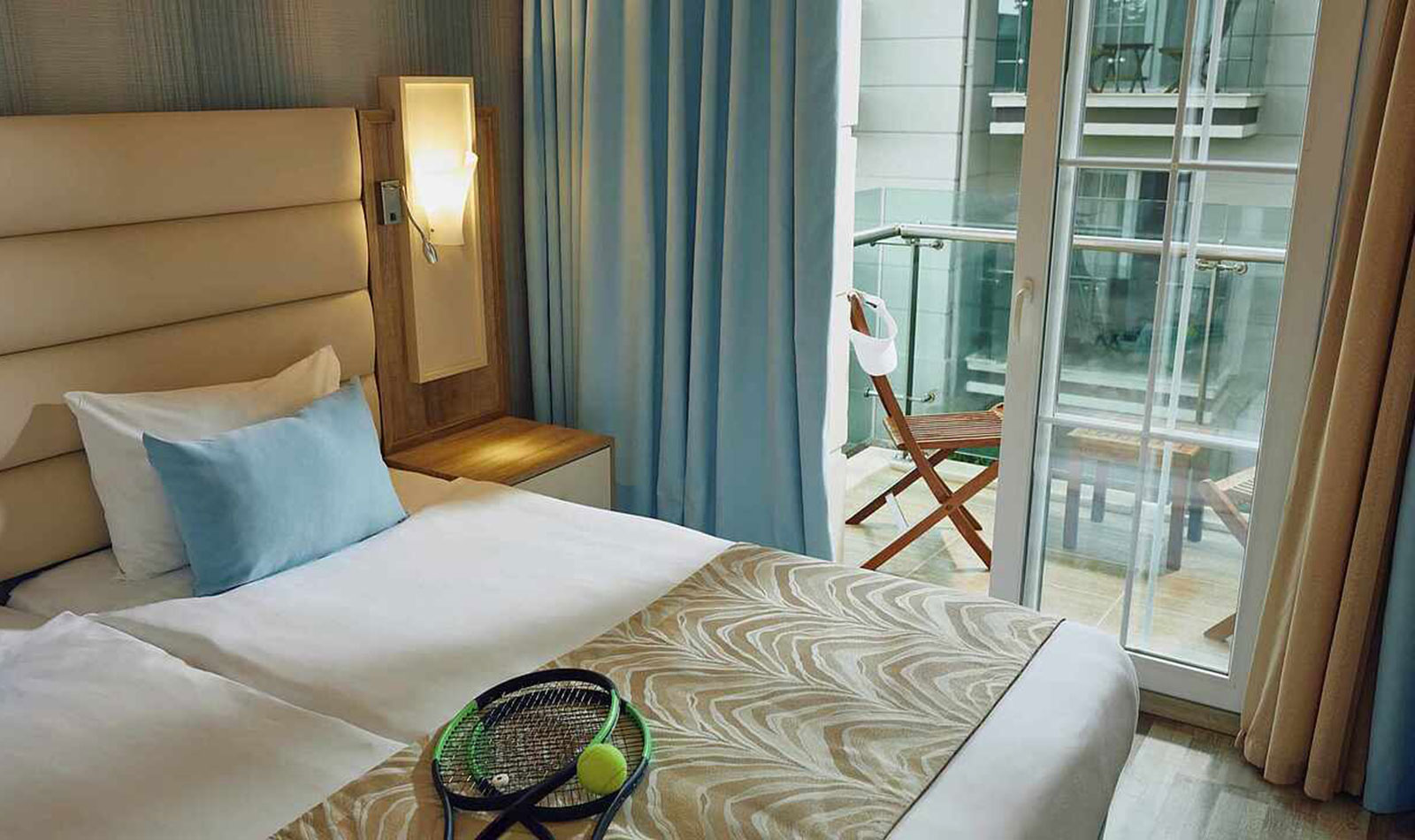 Details anzeigenNichtraucherzimmer, im Hauptgebäude oder im Spa Gebäude, ca. 38 m², letzte Komplettrenovierung 2016. Gesamtanzahl der Räume in diesem Zimmertyp: 2, Aufteilung wie folgt: 2 Schlafzimmer, durch Tür getrennt. 2 Einzelbetten, 1 Doppelbett, Babybett: ohne Gebühr. Mindest-/Maximalbelegung: mind. 2 Erwachsene / max. 3 Erwachsene/ Jugendliche von 16-21 Jahre oder 2 Erwachsene und 2 Kinder von 2-15 Jahre. Über die Maximalbelegung hinaus ist max. 1 Kleinkind unter 2 Jahren im Zimmer erlaubt.