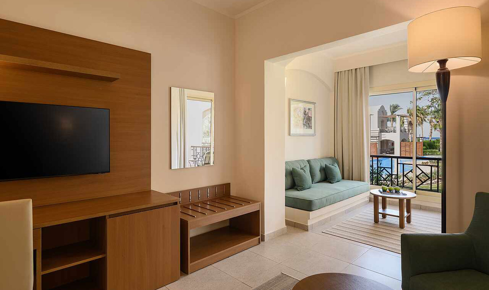 Details anzeigenNichtraucherzimmer. Poolblick. ca. 28 m², letzte Komplettrenovierung 2024. Gesamtanzahl der Räume in diesem Zimmertyp: 1, Aufteilung wie folgt: kombiniertes Wohn-/Schlafzimmer. Doppelbett oder 2 Einzelbetten. Mindest-/Maximalbelegung: mind. 1 Erwachsener / max. 2 Erwachsene.