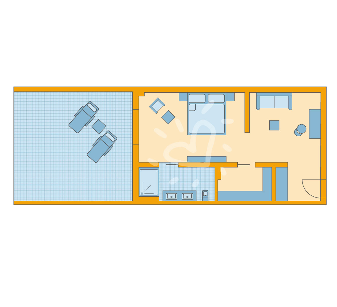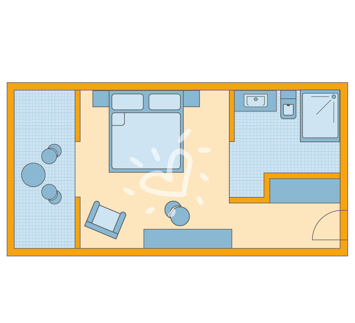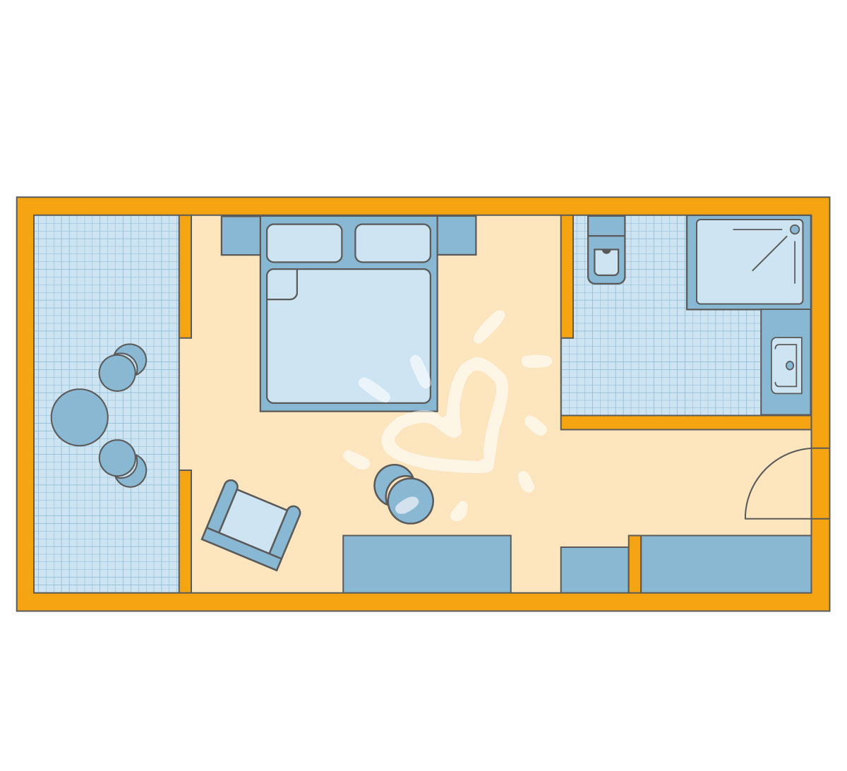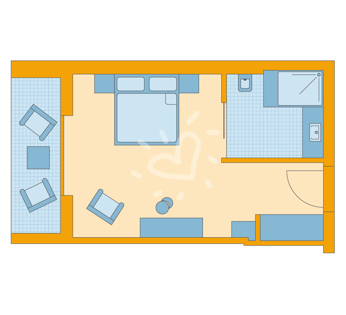 Details anzeigenNichtraucherzimmer, seitlicher Meerblick, ca. 52 m², Neubau 2019 Gesamtanzahl der Räume in diesem Zimmertyp: 1, Aufteilung wie folgt: kombiniertes Wohn-/Schlafzimmer 1 Doppelbett (200x200cm, zusammenstehende Einzelbetten) Mindest-/Maximalbelegung: mind./max. 2 Erwachsene
