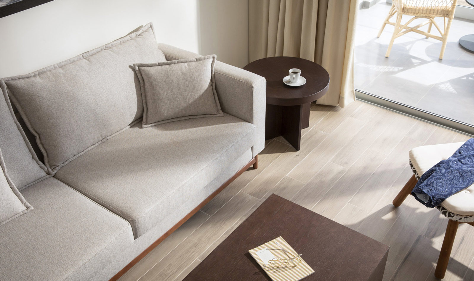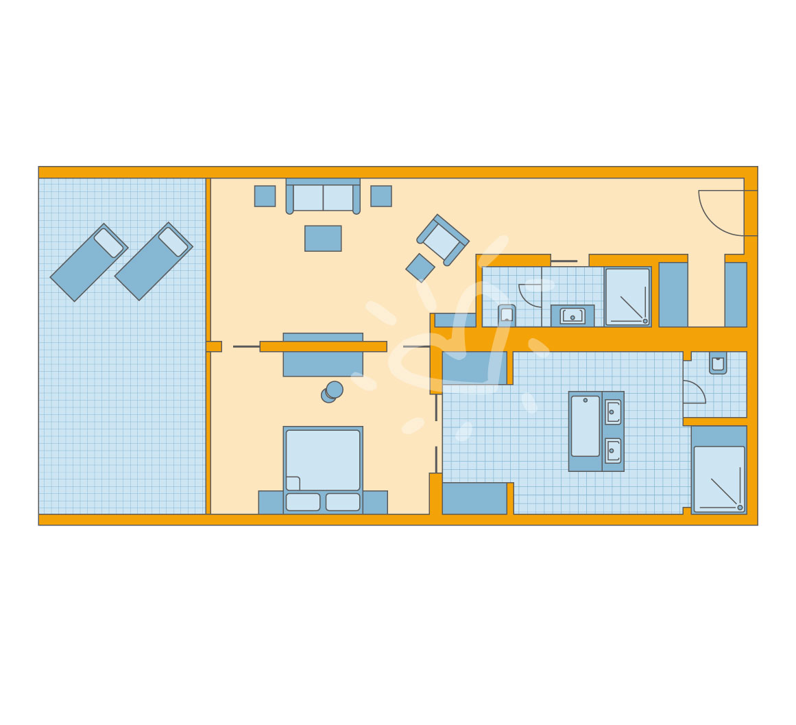 Details anzeigenNichtraucherzimmer, seitlicher Meerblick, ca. 87 m², Neubau 2019 Gesamtanzahl der Räume in diesem Zimmertyp: 2, Aufteilung wie folgt: bestehend aus 2 Zimmern, optisch getrennt durch Schiebetür, 1 Schlafzimmer 1 Doppelbett (200x200cm, zusammenstehende Einzelbetten), 1 Schlafsofa (200x140cm) Mindest-/Maximalbelegung: mind. 2 Erwachsene/max. 3 Erwachsene Die Unterbringung der 3. Person erfolgt auf dem Schlafsofa.
