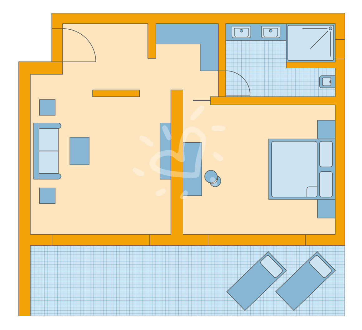 Klimaanlage: individuell regelbar, zentral gesteuert Fußboden: Fliesenboden Safe: ohne Gebühr Kühlschrank, Kaffeezubereiter Internet: WLAN/WiFi: ohne Gebühr, Fernseher: Flatscreen, deutsches Programm, Sat-TV, Radio Reinigungsservice: täglich 2 Bäder: Dusche, Badewanne (in einem Bad), WC, Föhn, Kosmetikspiegel Balkon: mit Liegen, mit SitzgelegenheitSafeWLANTVKlimaanlageBalkon -