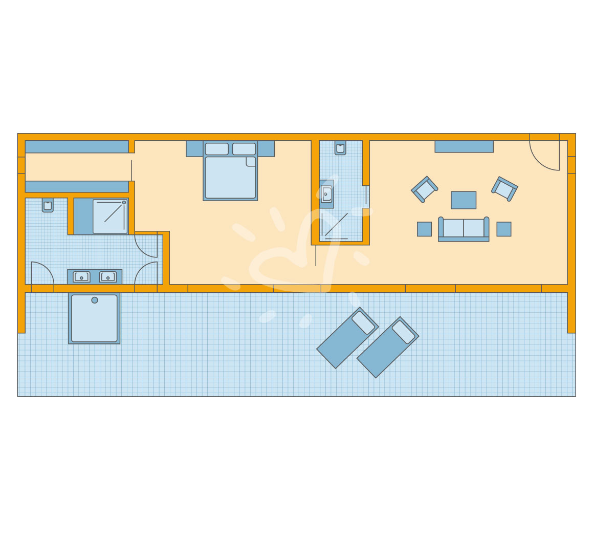 Details anzeigenNichtraucherzimmer, Meerblick, ca. 64 m², Neubau 2019 Gesamtanzahl der Räume in diesem Zimmertyp: 2, Aufteilung wie folgt: bestehend aus 2 Zimmern, optisch getrennt durch Schiebetür, 1 Schlafzimmer 1 Doppelbett (200x200cm, zusammenstehende Einzelbetten), 1 Schlafsofa (200x140cm) Mindest-/Maximalbelegung: mind. 2 Erwachsene / max. 3 Erwachsene Die Unterbringung der 3. Person erfolgt auf dem Schlafsofa