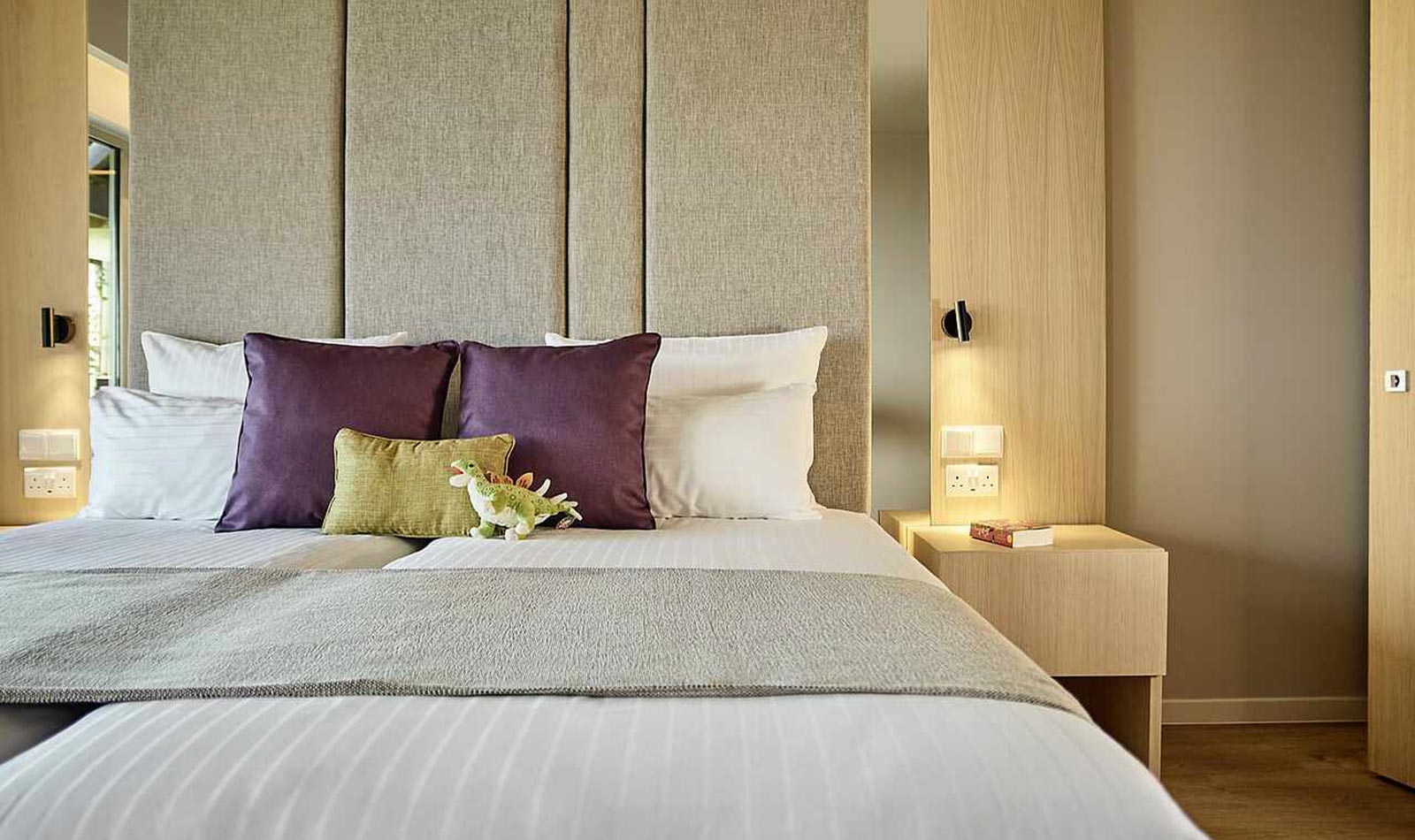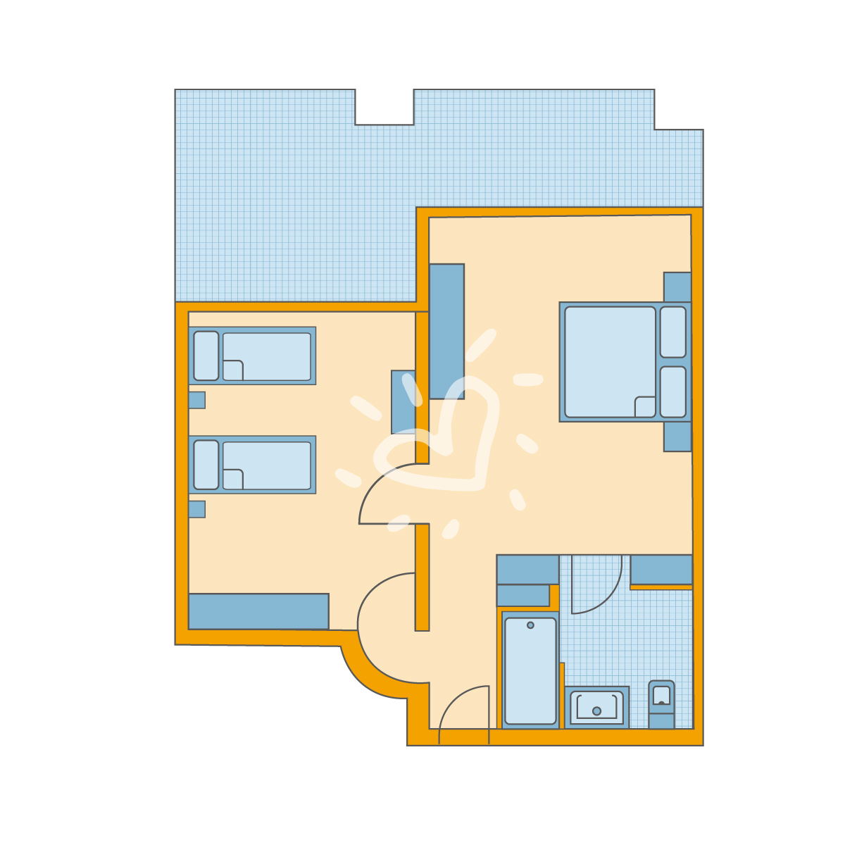Details anzeigenNichtraucherzimmer, ca. 49 m², letzte Komplettrenovierung 2020 Gesamtanzahl der Räume in diesem Zimmertyp: 2, Aufteilung wie folgt: bestehend aus 2 Schlafzimmern, optisch getrennt durch Schiebetür 1 Doppelbett, 2 Einzelbetten, Babybett: ohne Gebühr Mindest-/Maximalbelegung: mind. 2 Erwachsene und 1 Kind ab 2 Jahren / max. 2 Erwachsene und 2 Kinder von 2-17 Jahre oder 3 Erwachsene und 1 Kind von 2-17 Jahre sowie zusätzlich 1 Kleinkind unter 2 Jahren