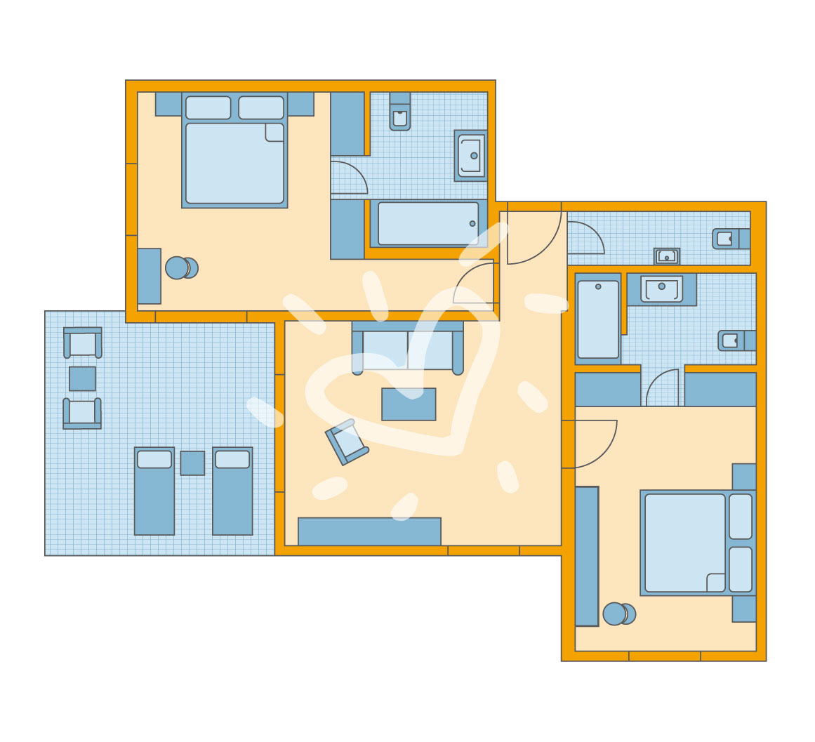 Details anzeigenNichtraucherzimmer, ca. 76 m², letzte Komplettrenovierung 2020 Gesamtanzahl der Räume in diesem Zimmertyp: 3, Aufteilung wie folgt: Wohnzimmer, 2 Schlafzimmer 2 Doppelbetten, Babybett: ohne Gebühr Mindest-/Maximalbelegung: mind. 2 Erwachsene und 2 Kinder ab 2 Jahre / max. 2 Erwachsene und 3 Kinder/Jugendliche von 2-17 Jahre bzw. 4 Erwachsene und 1 Kind/Jugendlicher von 2-17 Jahre sowie zusätzlich 1 Kleinkind unter 2 Jahren
