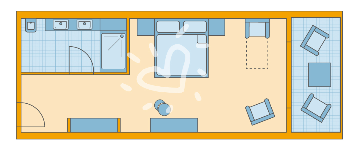 Klimaanlage: individuell regelbar, zentral gesteuert Fußboden: Laminat Safe: ohne Gebühr Kühlschrank Telefon, Internet: WLAN/WiFi: ohne Gebühr, Fernseher: Flatscreen, deutsches Programm, Sat-TV Reinigungsservice: täglich Dusche, WC, Föhn, Kosmetikspiegel Balkon oder Terrasse: mit SitzgelegenheitSafeWLANTVKlimaanlageBalkon -