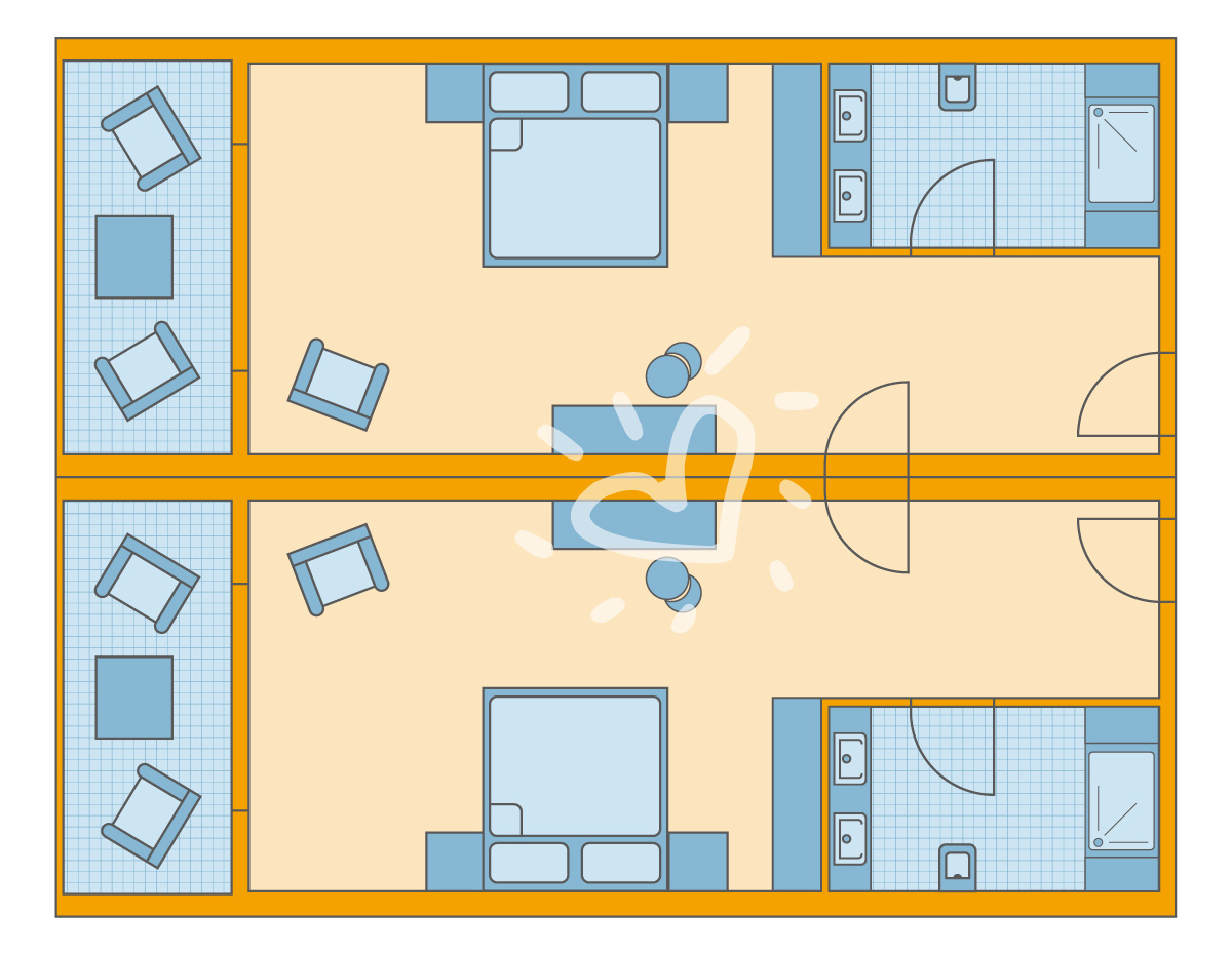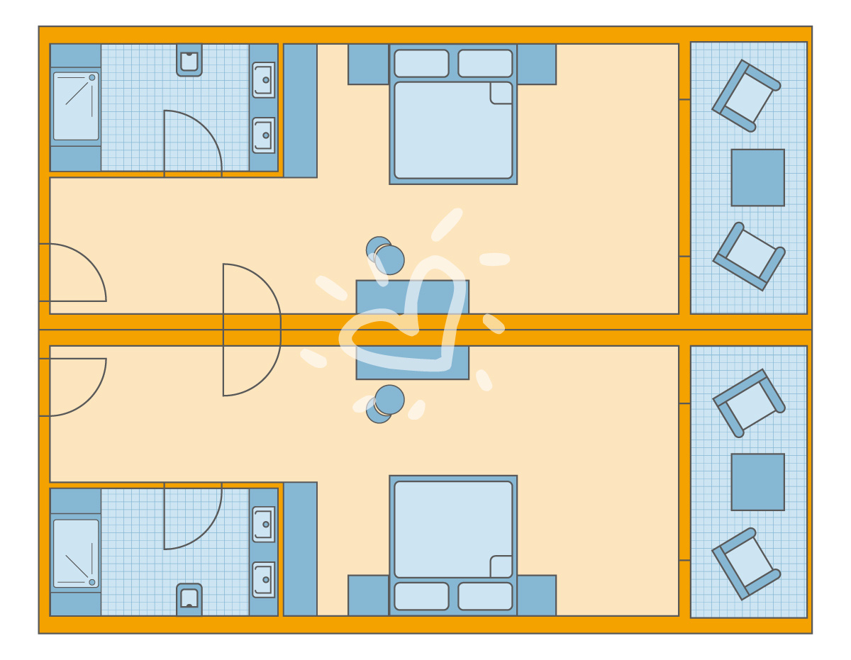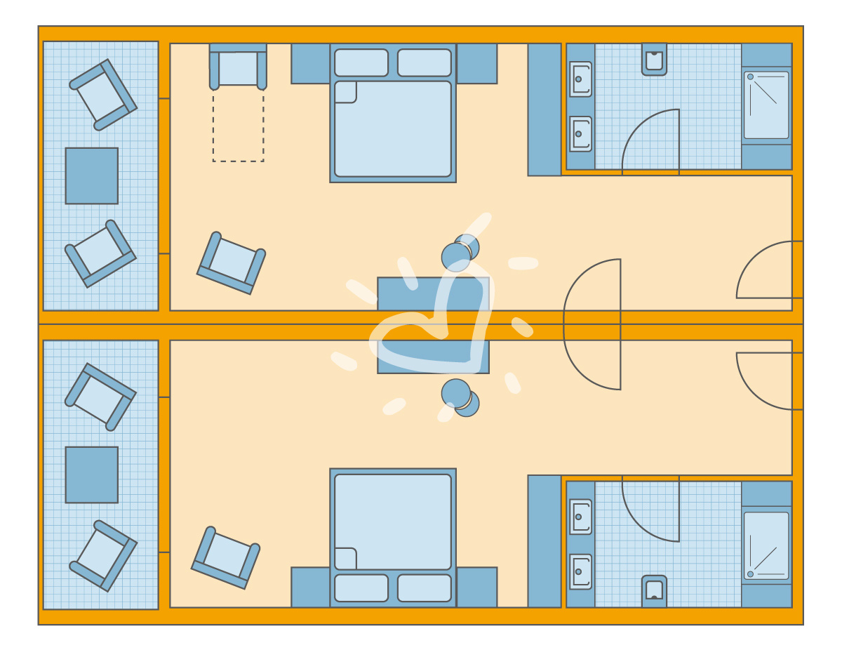 Details anzeigenNichtraucherzimmer, ca. 42 m², letzte Komplettrenovierung 2015 Gesamtanzahl der Räume in diesem Zimmertyp: 2, Aufteilung wie folgt: bestehend aus 2 Doppelzimmern (DZX1) mit Verbindungstür 2 Doppelbetten (200x200cm), Babybett: ohne Gebühr Mindest-/Maximalbelegung: mind. 2 Erwachsene und 1 Kind ab 2 Jahren / max. 2 Erwachsene, 2 Kinder/Jugendliche von 2-17 Jahre und 1 Kleinkind unter 2 Jahren oder für max. 3 Erwachsene, 1 Kind/Jugendlicher von 2-17 Jahre und 1 Kleinkind unter 2 Jahren