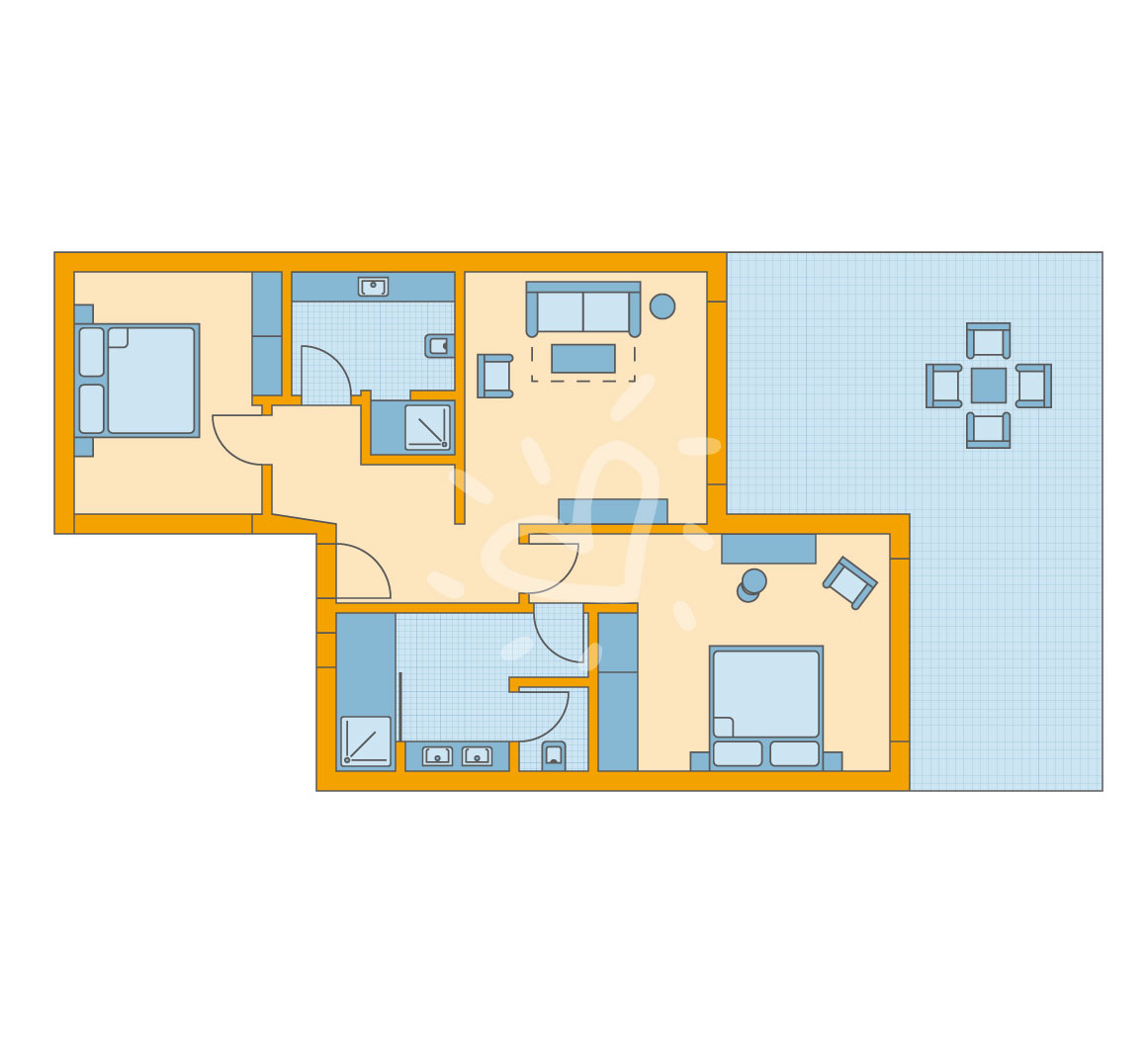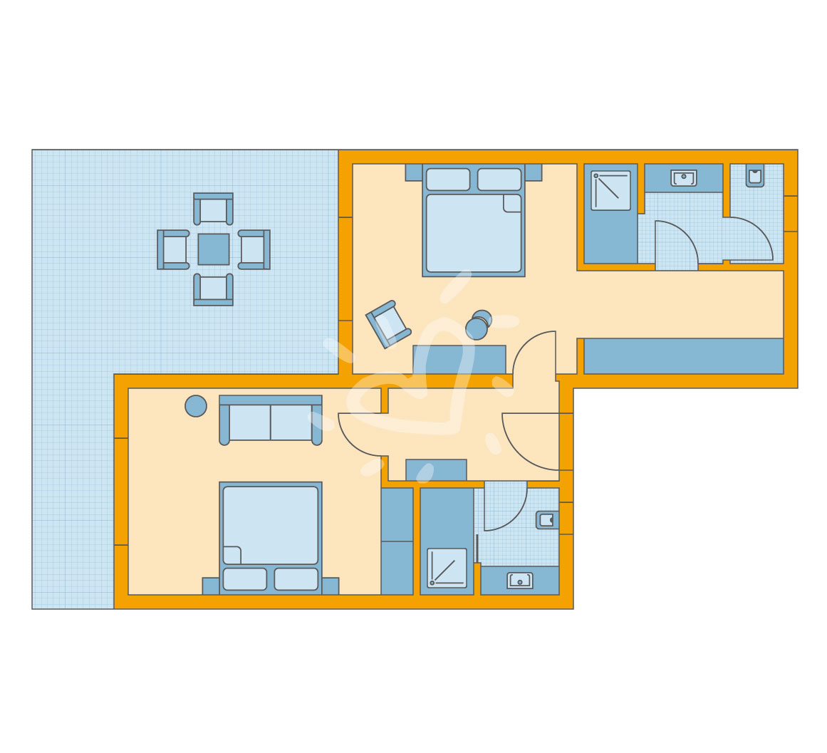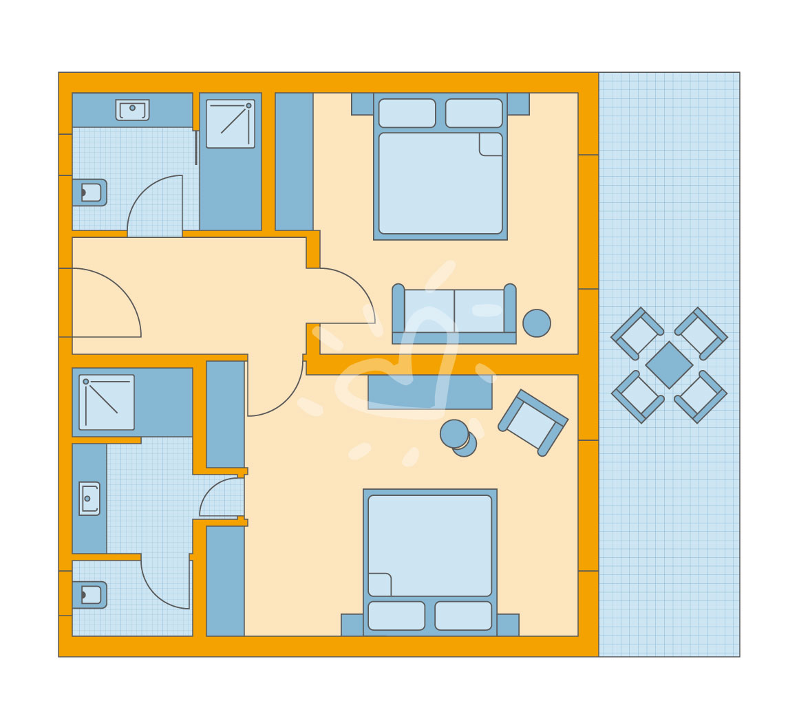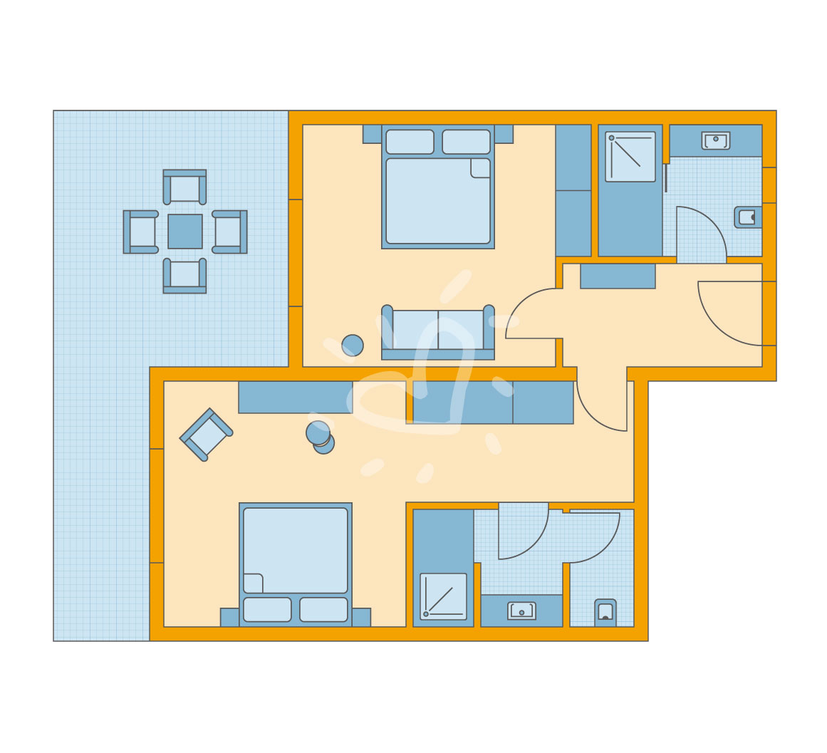 Klimaanlage: individuell regelbar, zentral gesteuert, kalt, warm Fußboden: Fliesenboden Safe: ohne Gebühr Sofa Kühlschrank Telefon, Internet: WLAN/WiFi: ohne Gebühr, Fernseher: Flatscreen, deutsches Programm, Sat-TV, Radio Reinigungsservice: täglich Dusche, WC, 2 Bäder, Föhn, Kosmetikspiegel Balkon oder Terrasse: mit SitzgelegenheitSafeWLANTVKlimaanlageBalkon -