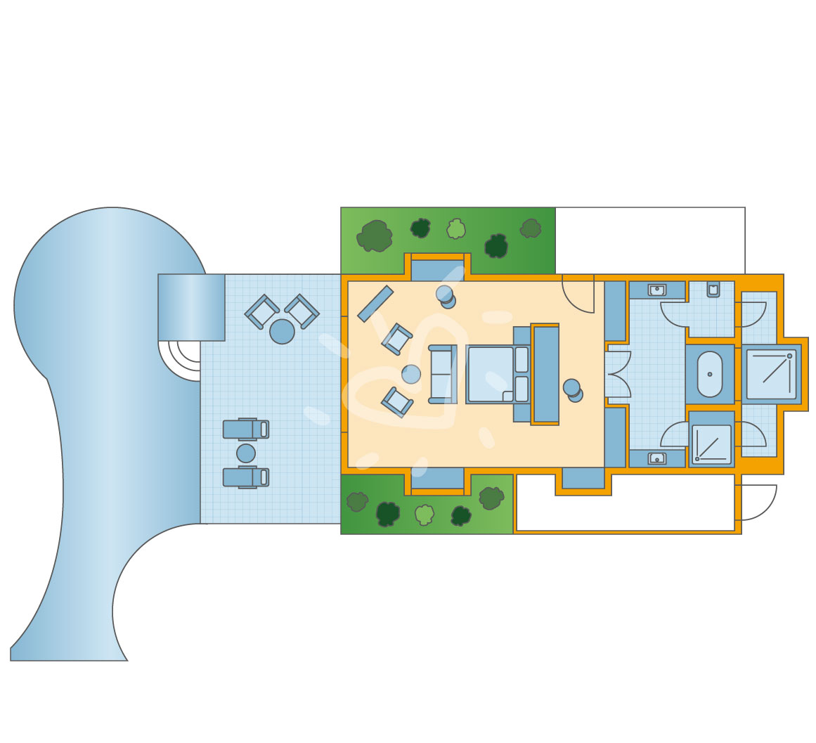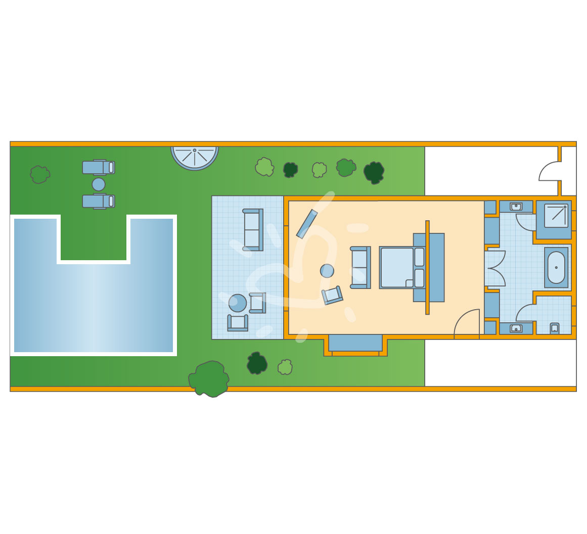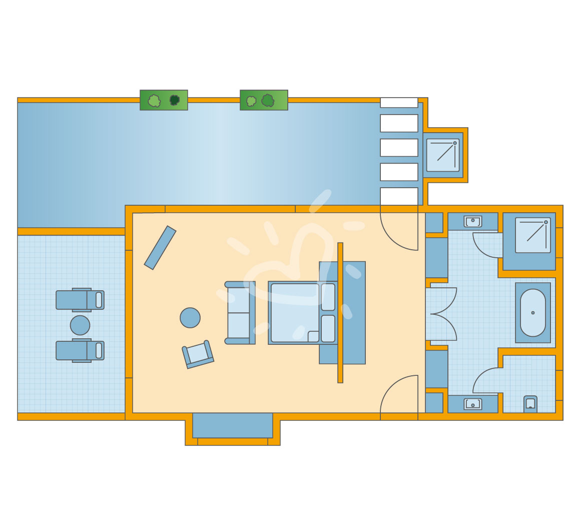 Details anzeigenNichtraucherzimmer, Zentrale Lage (in der Nähe von Hauptbar, -restaurant und -pool), Lagunen- oder Gartenblick, ca. 80 m² Gesamtanzahl der Räume in diesem Zimmertyp: 1 1 Doppelbett (180x200cm), 1 Schlafsofa (90x175cm), Babybett: ohne Gebühr Mindest-/Maximalbelegung: mind. 1 Erwachsener / max. 2 Erwachsene, 1 Kind/Jugendlicher 2-17 Jahre und 1 Kleinkind unter 2 Jahren oder 3 Erwachsene und 1 Kleinkind unter 2 Jahren Die Unterbringung der 3. Person erfolgt auf dem Schlafsofa