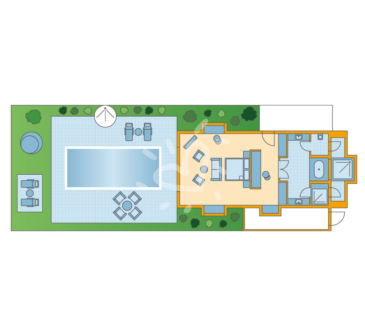 Details anzeigenNichtraucherzimmer, im Village, Garten- und Private Poolblick, ca. 80 - 88 m² Gesamtanzahl der Räume in diesem Zimmertyp: 1 1 Doppelbett (180x200cm), 1 Schlafsofa (90x175cm), Babybett: ohne Gebühr Mindest-/Maximalbelegung: mind. 1 Erwachsener / max. 2 Erwachsene, 1 Kind/Jugendlicher 2-17 Jahre und 1 Kleinkind unter 2 Jahren oder 3 Erwachsene und 1 Kleinkind unter 2 Jahren Die Unterbringung der 3. Person erfolgt auf dem Schlafsofa