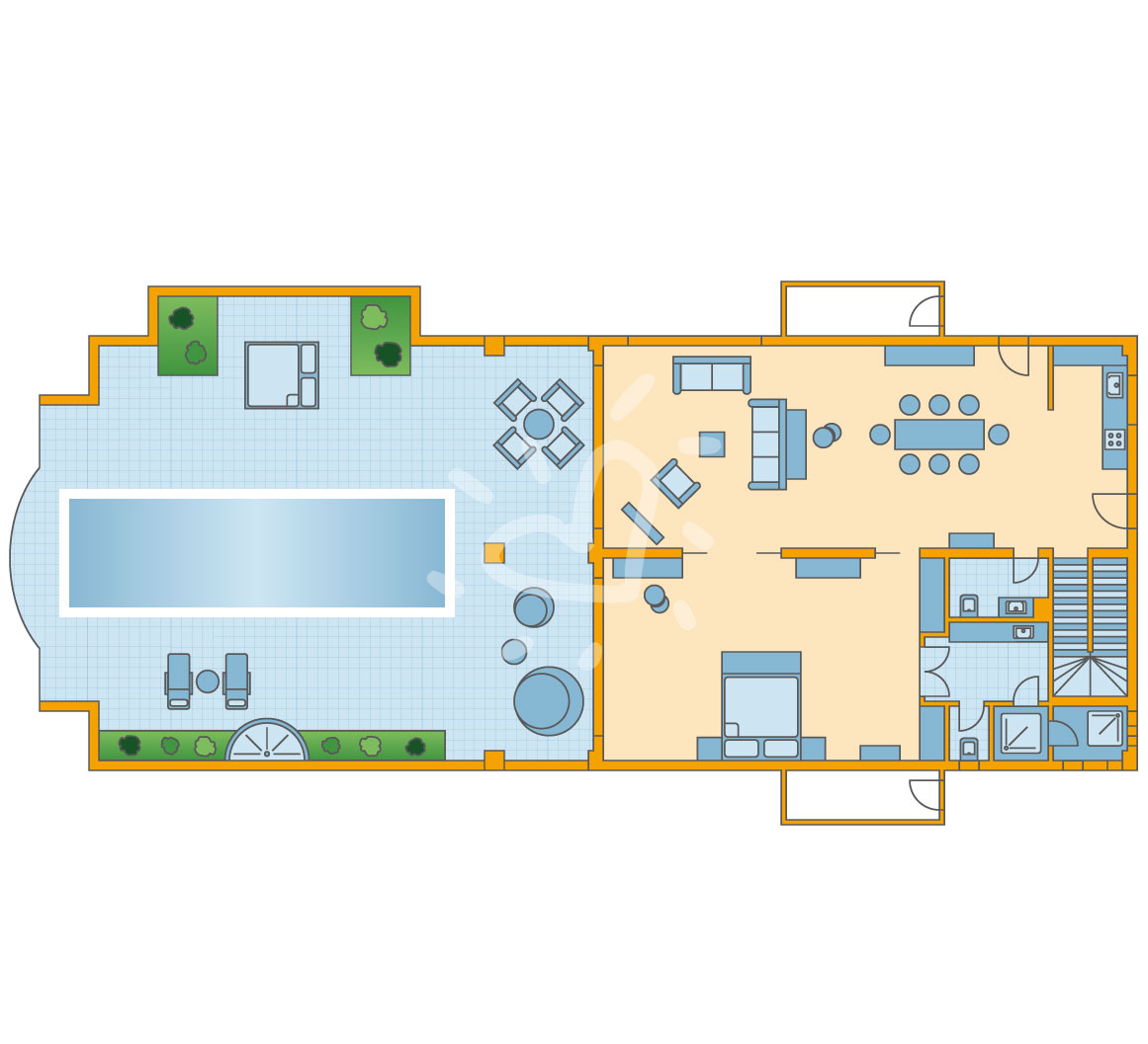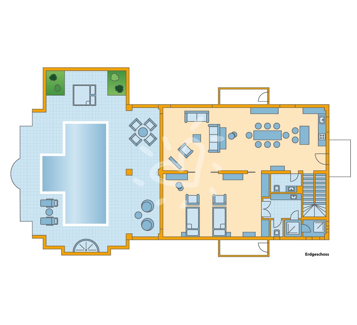 - Poollandschaft mit zwei kleinen Wasserrutschen