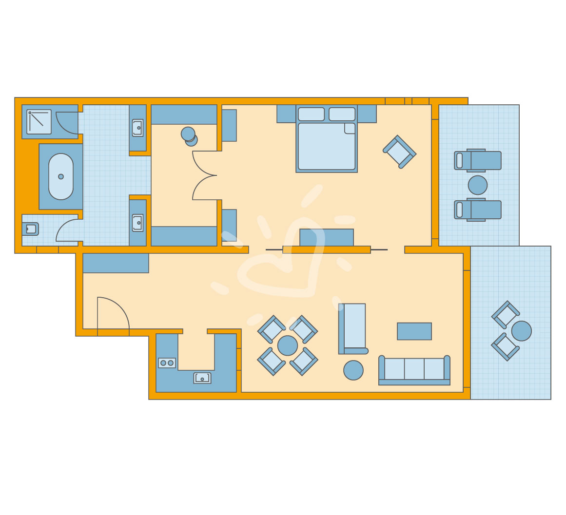 Details anzeigenNichtraucherzimmer, Im Village, Erdgeschoss, Poolblick, ca. 154 m² Gesamtanzahl der Räume in diesem Zimmertyp: 2, , optisch getrennt durch Schiebetür, Aufteilung wie folgt: Wohn-/Esszimmer, 1 Schlafzimmer 1 King Size Bett (180x200cm), 1 Schlafsofa (90x175cm), Babybett: ohne Gebühr Mindest-/Maximalbelegung: mind. 2 Erwachsene / max. 2 Erwachsene, 2 Kinder / Jugendliche von 2-17 Jahre und 1 Kleinkind unter 2 Jahren oder 4 Erwachsene und 1 Kleinkind unter 2 Jahren Die Unterbringung der 3. und 4. Person erfolgt auf dem Schlafsofa und im Zustellbett