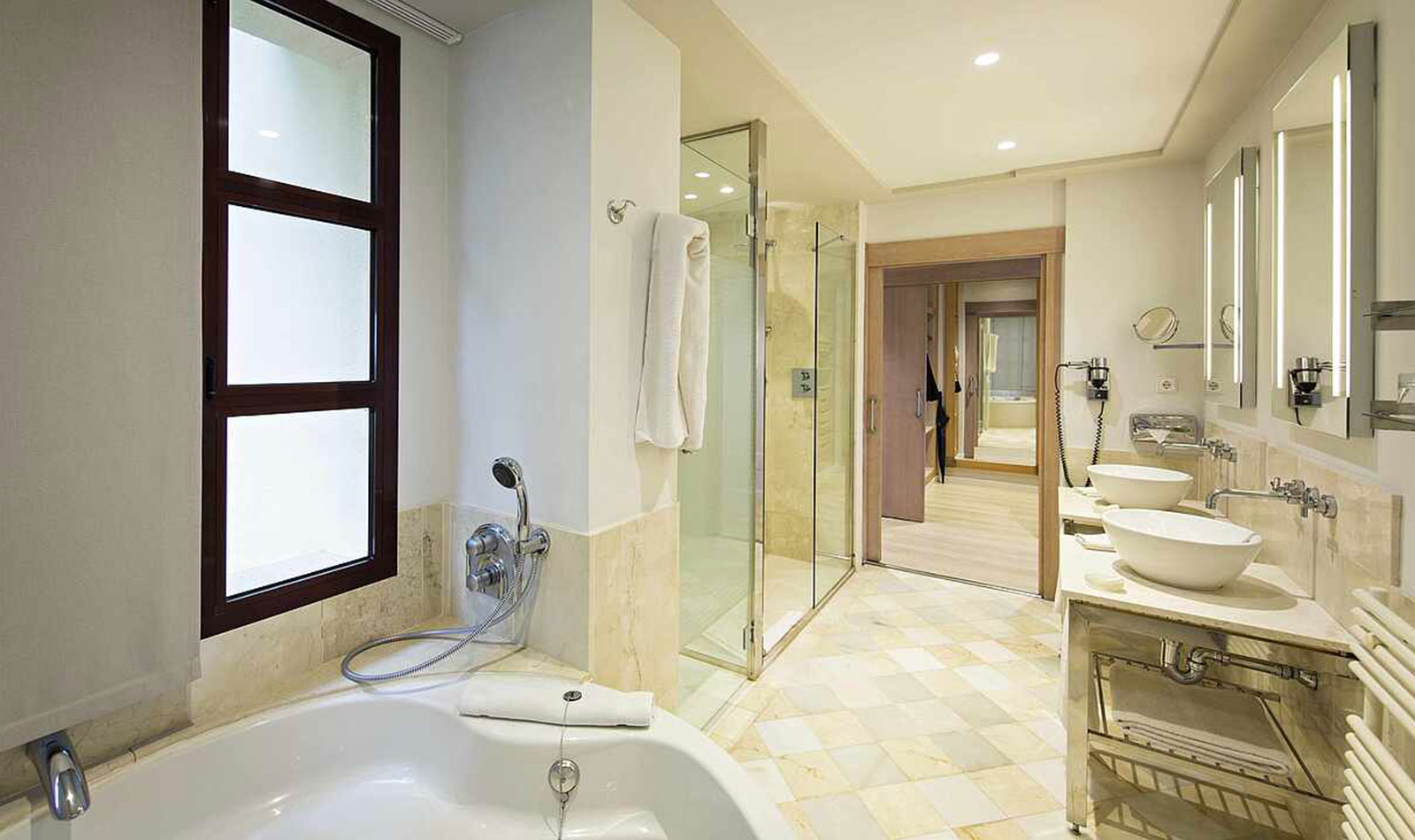 Klimaanlage: individuell regelbar, zentral gesteuert, kalt, warm Fußboden: Fliesenboden, Parkett Safe: ohne Gebühr Sitzecke Kühlschrank, Kaffeezubereiter Telefon, Internet: WLAN/WiFi: ohne Gebühr, Fernseher: Flatscreen, deutsches Programm, Sat-TV, Radio Reinigungsservice: täglich Dusche, Badewanne, WC, separates WC, Föhn, Kosmetikspiegel Balkon: mit SitzgelegenheitSafeWLANTVKlimaanlageBalkon -