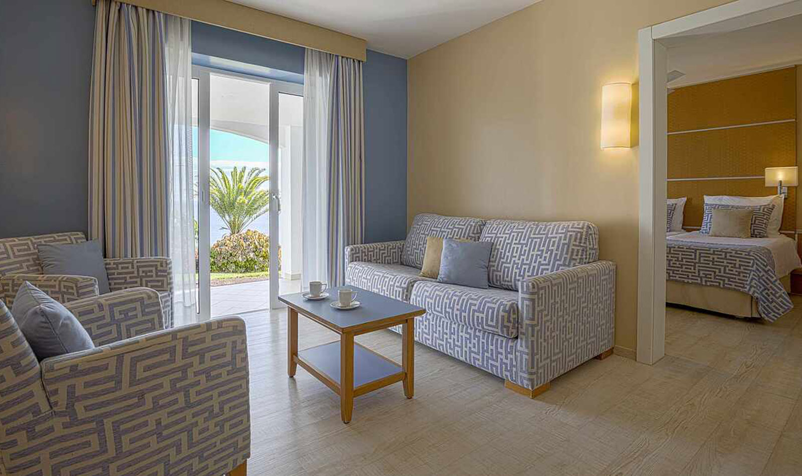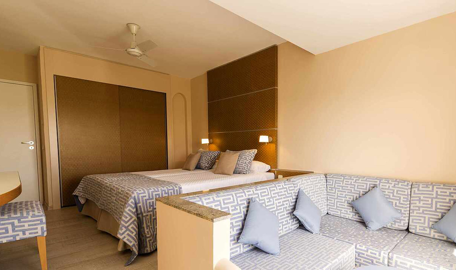 Details anzeigenNichtraucherzimmer, ca. 34 m², Meerblick Gesamtanzahl der Räume in diesem Zimmertyp: 2, Aufteilung wie folgt: kombiniertes Wohn-/Schlafzimmer, 1 Schlafzimmer 2 Doppelbetten (180x200cm), 1 Schlafsofa (80x200cm), Babybett: ohne Gebühr Mindest-/Maximalbelegung: mind. 2 Erwachsene und 1 Kind ab 2 Jahren / max. 4 Erwachsene, 1 Kind 2-17 Jahre und 1 Kleinkind unter 2 Jahren Die Unterbringung der 5. Person erfolgt auf dem Schlafsofa