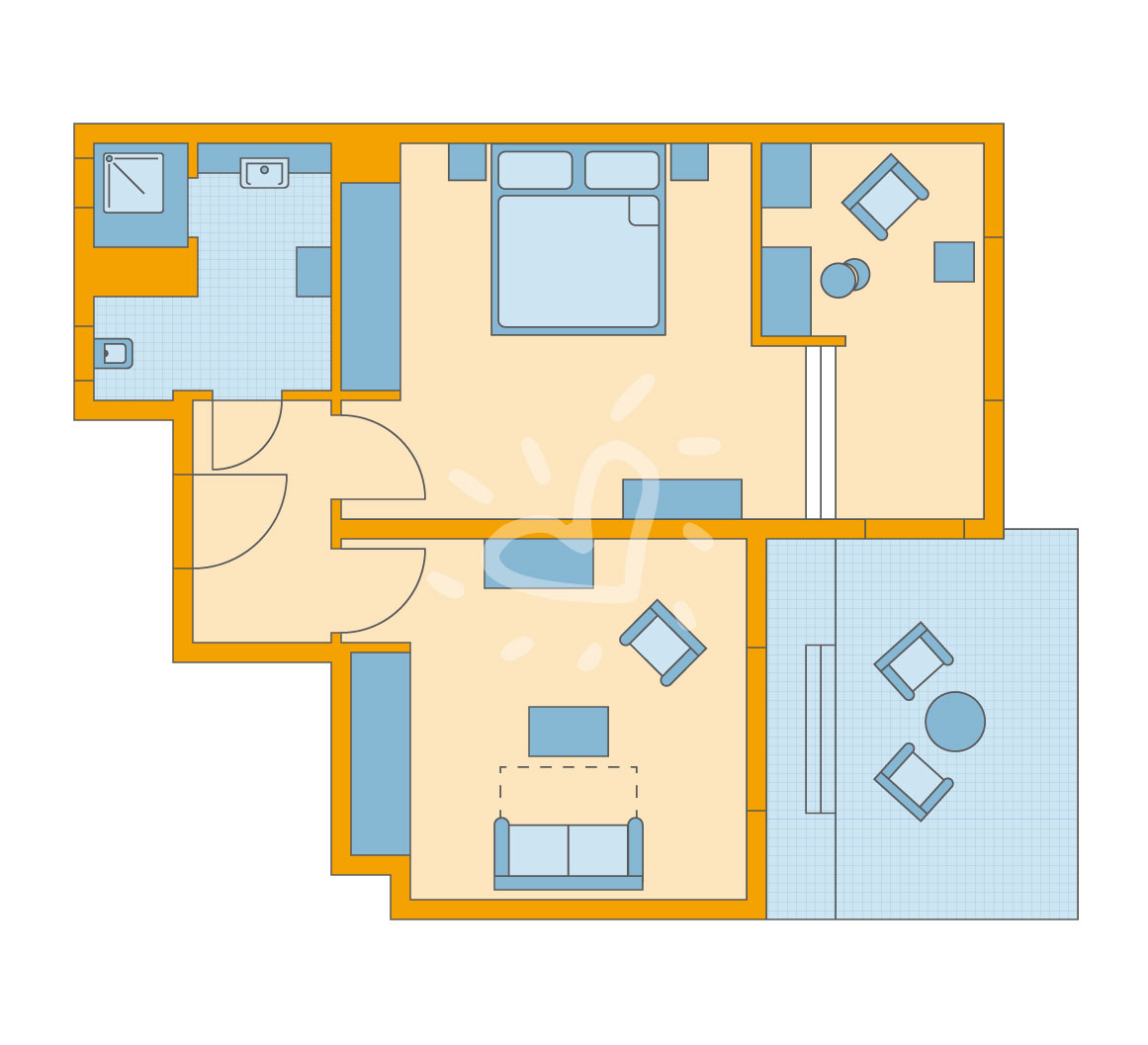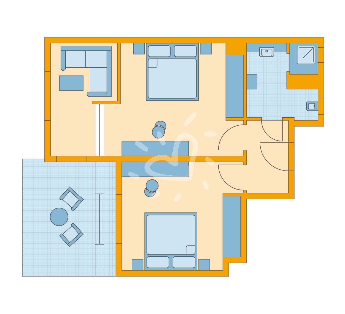 Details anzeigenNichtraucherzimmer, ca. 34 m², Meerblick Gesamtanzahl der Räume in diesem Zimmertyp: 2, Aufteilung wie folgt: Wohnzimmer, 1 Schlafzimmer 1 Doppelbett (180x200cm), 1 Schlafsofa (140x160cm), Babybett: ohne Gebühr Mindest-/Maximalbelegung: mind. 2 Erwachsene / max. 2 Erwachsene, 1 Kind 2-14 Jahre und 1 Kleinkind unter 2 Jahren Die Unterbringung der 3. Person erfolgt auf dem Schlafsofa