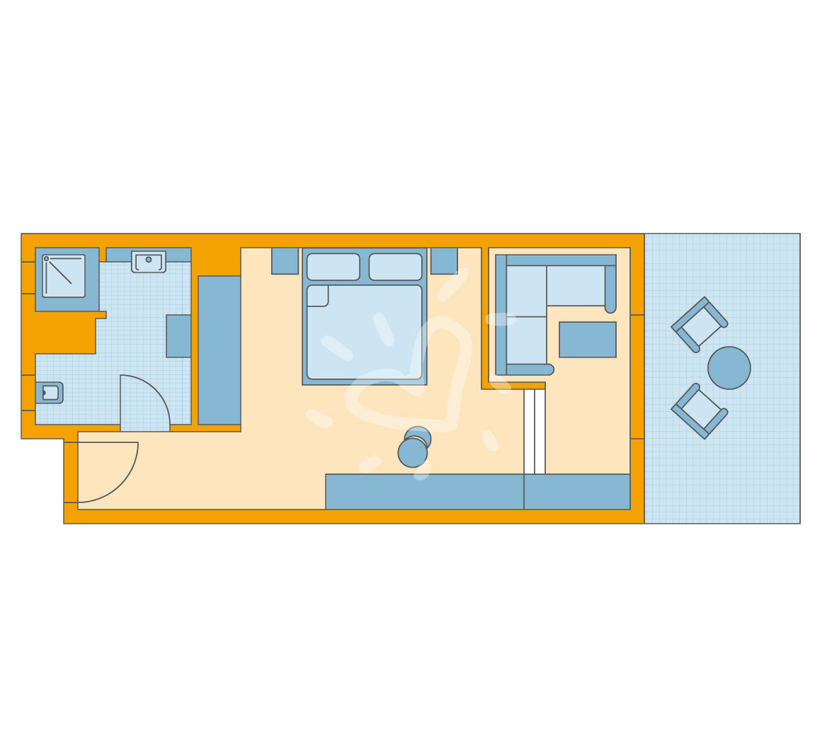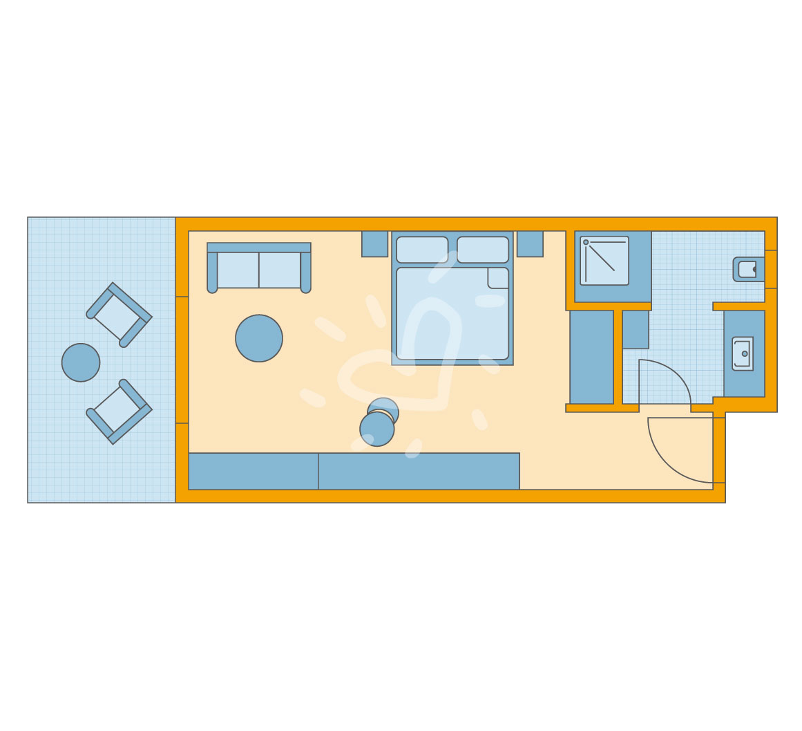 Details anzeigenNichtraucher, ca. 26 m², Meerblick Gesamtanzahl der Räume in diesem Zimmertyp: 1 1 Doppelbett (180x200cm, 2 zusammenstehende Einzelbetten), 1 Schlafsofa (80x200 cm), Babybett: ohne Gebühr Mindest-/Maximalbelegung: mind. 2 Erwachsene / max. 3 Erwachsene und 1 Kleinkind unter 2 Jahren Die Unterbringung der 3. Person erfolgt auf dem Schlafsofa