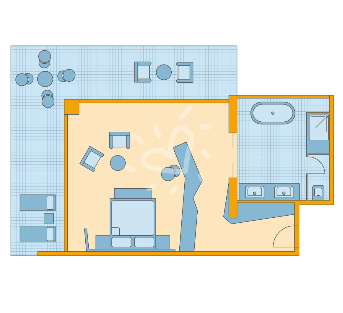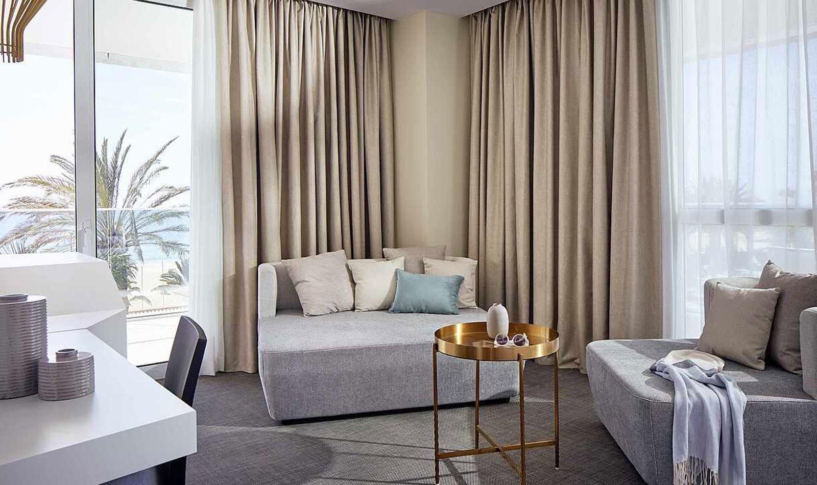 Details anzeigenNichtraucherzimmer, im Hauptgebäude, 8. Etage, Meerblick, ca. 130 m² Gesamtanzahl der Räume in diesem Zimmertyp: 3, Aufteilung wie folgt: Wohnzimmer und 2 Schlafzimmer auf 2 Ebenen (1. Ebene: Schlafzimmer, Bad und Wohnzimmer mit Aufgang, Balkon mit Liegen und 2. Ebene: Schlafzimmer, Bad, Balkon mit Sitzgelegenheit) 2 Doppelbetten (je 220x200cm, bestehend aus jeweils 2 verschiebbaren Einzelbetten) Mindest-/Maximalbelegung: mind. 2 Erwachsene / max. 4 Erwachsene letzte Komplettrenovierung 2018