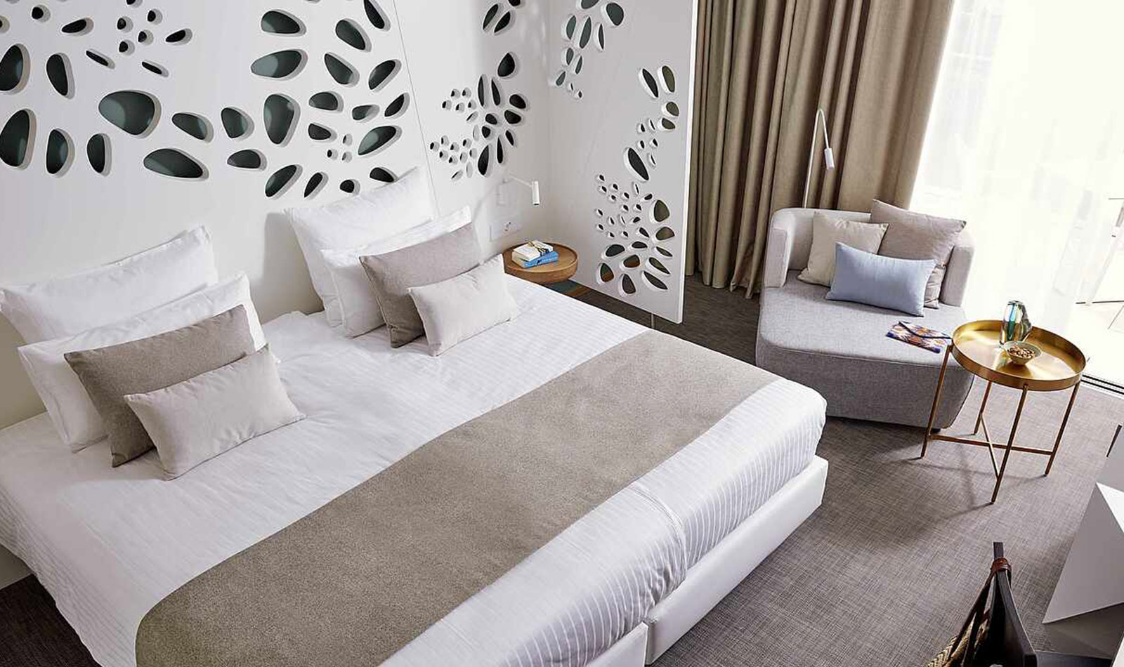Details anzeigenNichtraucherzimmer, im Hauptgebäude, 4. - 9. Etage, Poolseite oder Leuchtturmseite, seitlicher Meerblick, ca. 30 - 35 m² Gesamtanzahl der Räume in diesem Zimmertyp: 1, Aufteilung wie folgt: 1 Schlafzimmer 1 Doppelbett (220x200cm, 2 verschiebbare Einzelbetten) Mindest-/Maximalbelegung: mind. 1 Erwachsener / max. 2 Erwachsene letzte Komplettrenovierung 2018