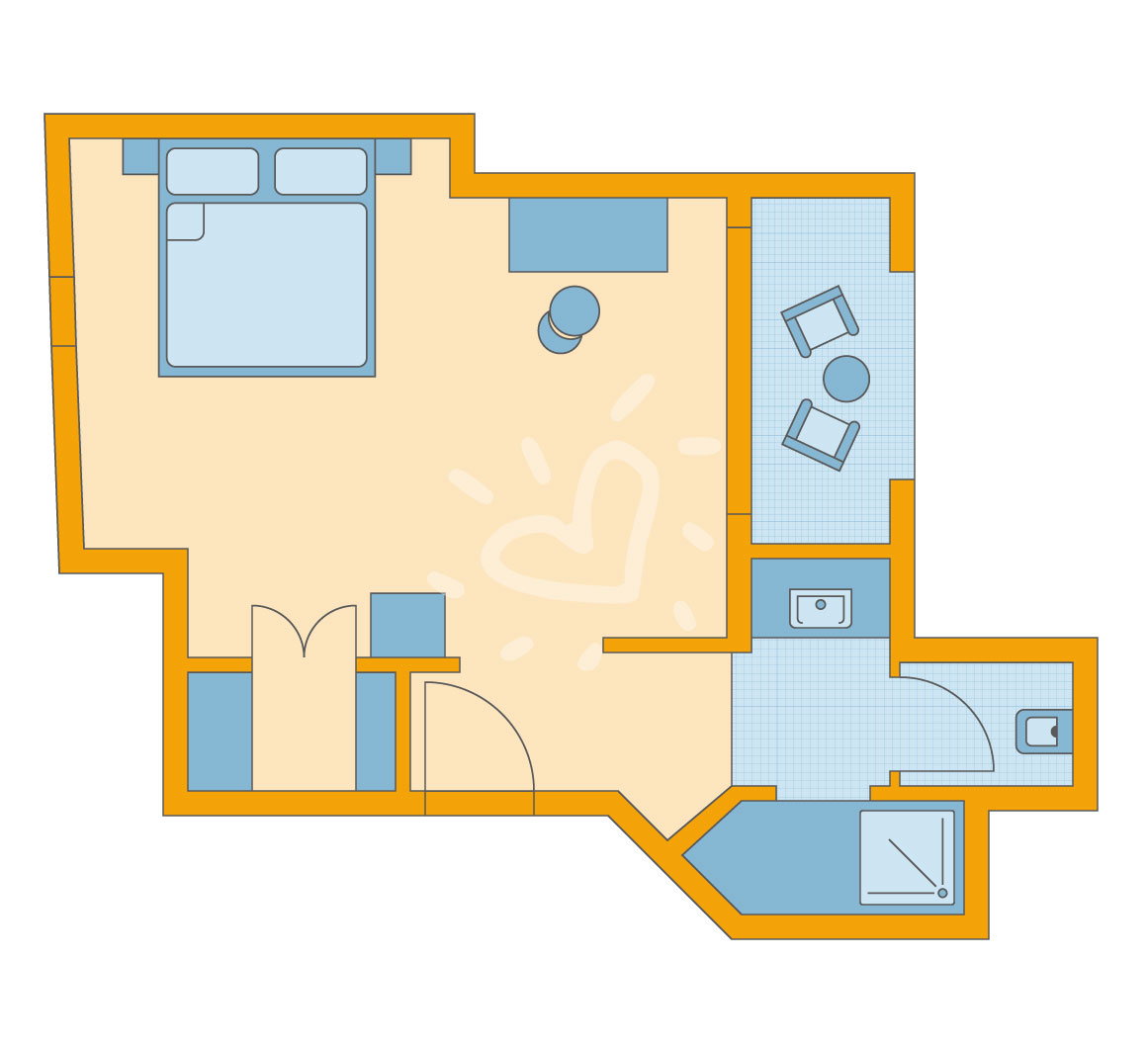 Klimaanlage: individuell regelbar, zentral gesteuert Fußboden: Laminat Safe: ohne Gebühr Kühlschrank Telefon, Internet: teilweise WLAN/WiFi: ohne Gebühr, Fernseher: Flatscreen, deutsches Programm, Sat-TV, Radio Reinigungsservice: täglich Dusche, separates WC, Föhn, Kosmetikspiegel Balkon: mit SitzgelegenheitSafeWLANTVKlimaanlageBalkon