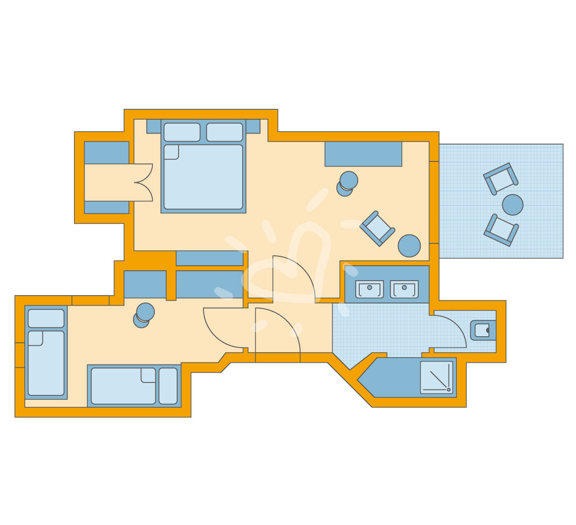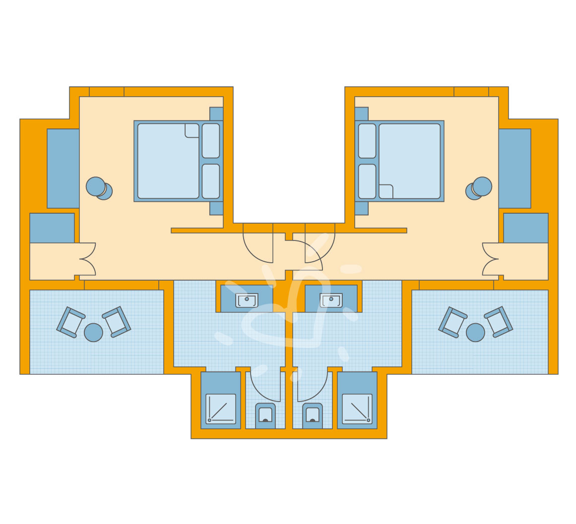 Klimaanlage: individuell regelbar, zentral gesteuert Fußboden: Laminat Safe: ohne Gebühr Kühlschrank Telefon, Internet: teilweise WLAN/WiFi: ohne Gebühr, Fernseher: Flatscreen, deutsches Programm, Sat-TV, Radio Reinigungsservice: täglich 2 Bäder: Dusche, separates WC, Föhn, Kosmetikspiegel 2 Balkone: mit SitzgelegenheitSafeWLANTVKlimaanlageBalkon -