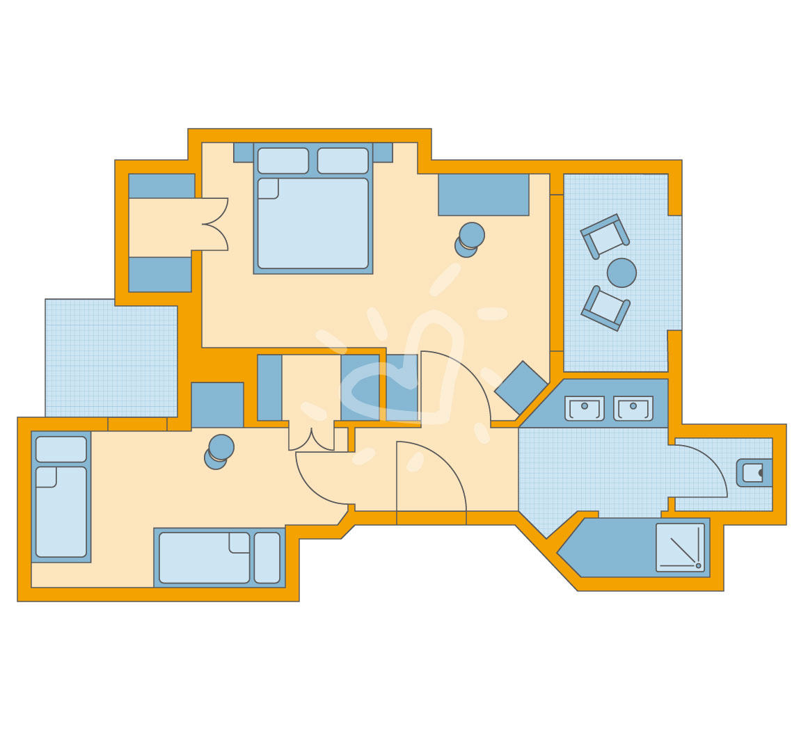 Details anzeigenNichtraucherzimmer, Erdgeschoss, ca. 51 - 60 m², letzte Komplettrenovierung 2013 Gesamtanzahl der Räume in diesem Zimmertyp: 2, Aufteilung wie folgt: bestehend aus 2 Doppelzimmern mit Verbindungstür 2 Doppelbetten (180x200cm), 1 Zustellbett (90x190cm), Babybett: ohne Gebühr, Reservierung notwendig Mindest-/Maximalbelegung: mind. 2 Erwachsene und 2 Kinder ab 2 Jahren / max. 2 Erwachsene und 3 Kinder/Jugendliche von 2-17 Jahre (limitiert) sowie 1 Kleinkind unter 2 Jahren Die Unterbringung der 5. Person erfolgt im Zustellbett