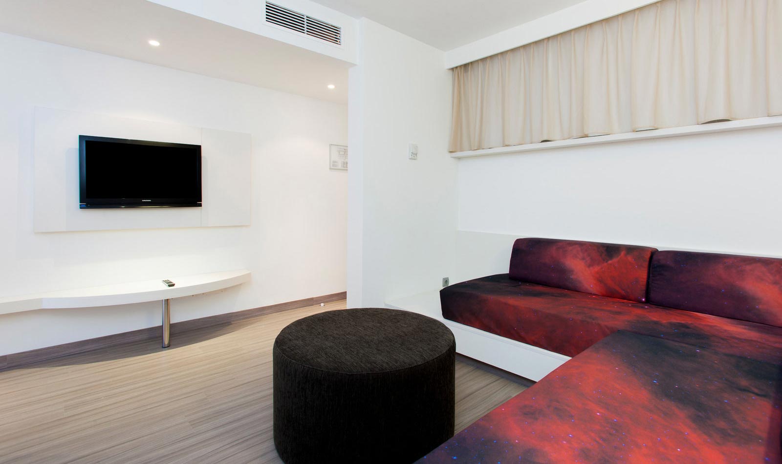 Details anzeigenFamilienzimmer im Hauptgebäude, Meerblick, ca. 42 m², letzte Komplettrenovierung 2013, Gesamtanzahl der Räume in diesem Zimmertyp: 2, Aufteilung wie folgt: Kinderzimmer, 1 Schlafzimmer, 1 Doppelbett (190x200cm), 2 Schlafsofas (90x190cm), Babybett: ohne Gebühr, Anfrage nicht notwendig