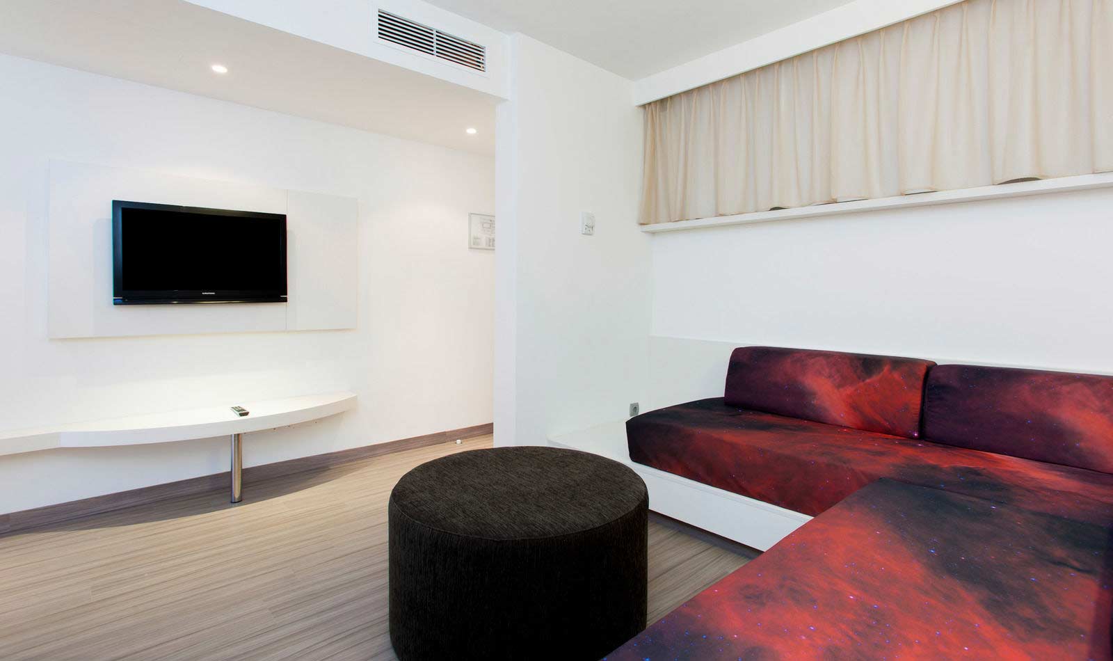 Details anzeigenFamilienzimmer im Hauptgebäude, Poolblick, ca. 44 m², letzte Komplettrenovierung 2013, Gesamtanzahl der Räume in diesem Zimmertyp: 2, Aufteilung wie folgt: kombiniertes Wohn-/Schlafzimmer, 1 Schlafzimmer, 1 King Size Bett (200x200cm), Babybett: ohne Gebühr, Anfrage nicht notwendig